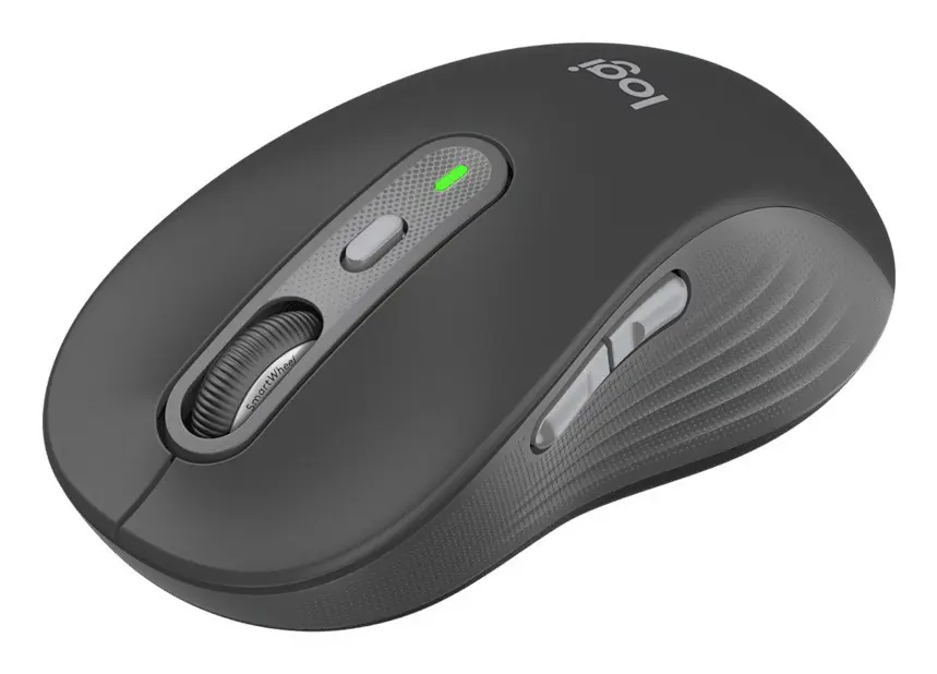 Logitech Signature Plus M750L. Fattore di forma: Mano destra. Tecnologia di rilevamento del movimento: Ottico, Interfaccia dispositivo: RF senza fili + Bluetooth, Risoluzione movimento: 4000 DPI, Tipo di pulsanti: Tasti premuti, Numero di tasti: 6, Tipo di scorimmento: Rotella. Alimentazione: Batterie. Colore del prodotto: Grafite