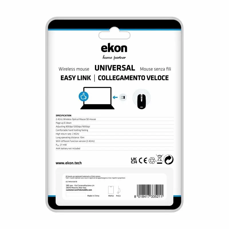 Il mouse senza fili è compatibile con la maggior parte dei laptop e PC provvisti di una porta USB. Usarlo è facile: nessuna installazione è infatti richiesta. Inserisci il ricevitore USB nella porta dedicata del PC ed inizia subito a cliccare sui due tasti del mouse e a scorrere pagine con la pratica rotellina di questo accessorio.