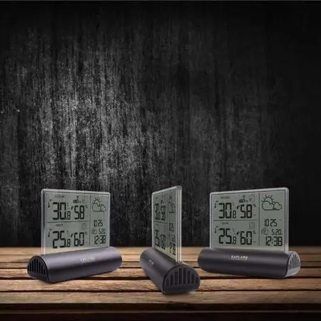 Funzioni di misurazione: Barometro per interni, Igrometro da interno, Termometro da interno, Barometro da esterno, Igrometro per esterno, Termometro da esterno