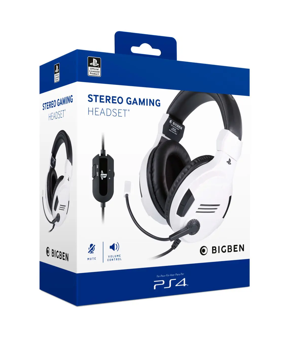 BIG BEN PS4OFHEADSETV3WHITE, Cablato, Giocare, Auricolare, Nero, Bianco