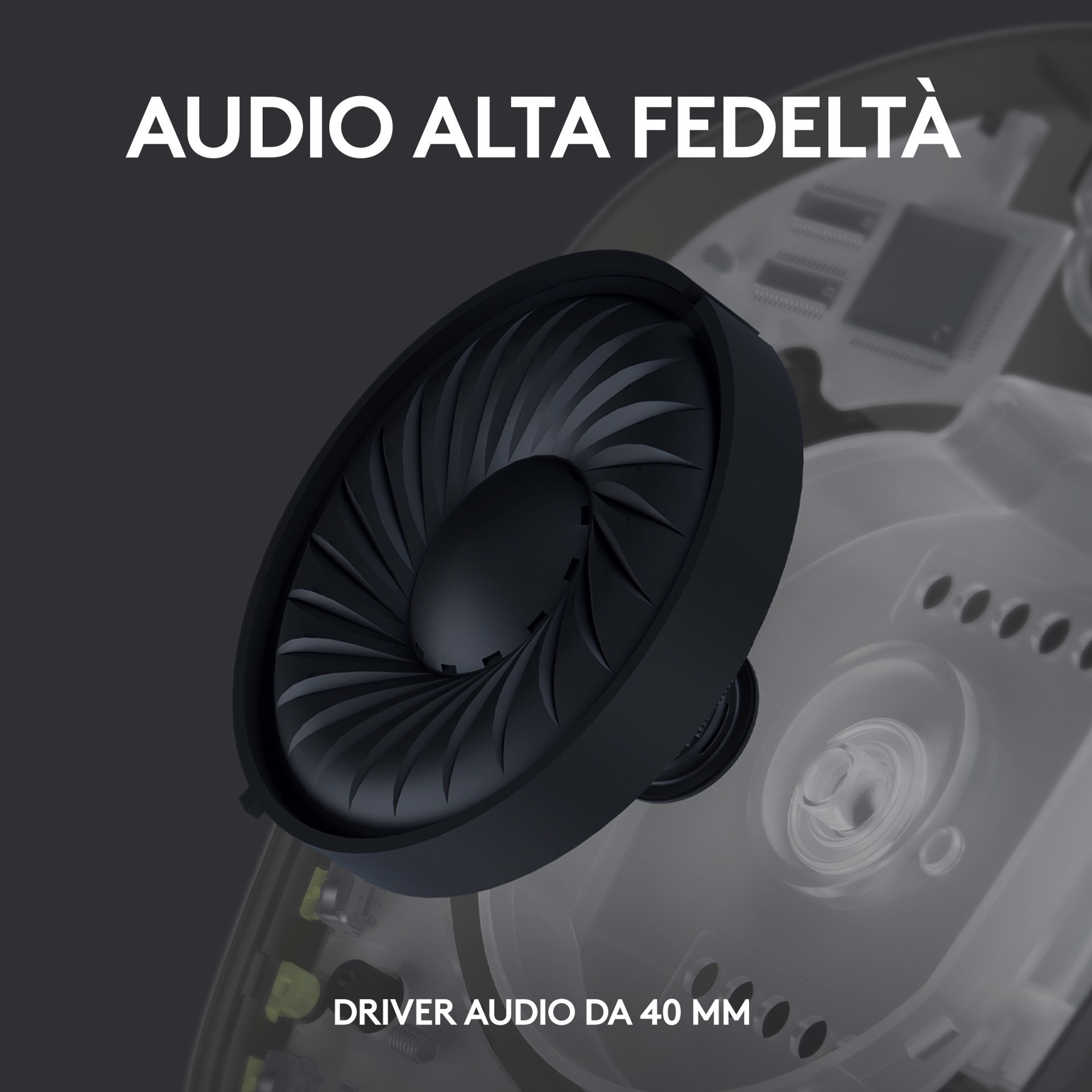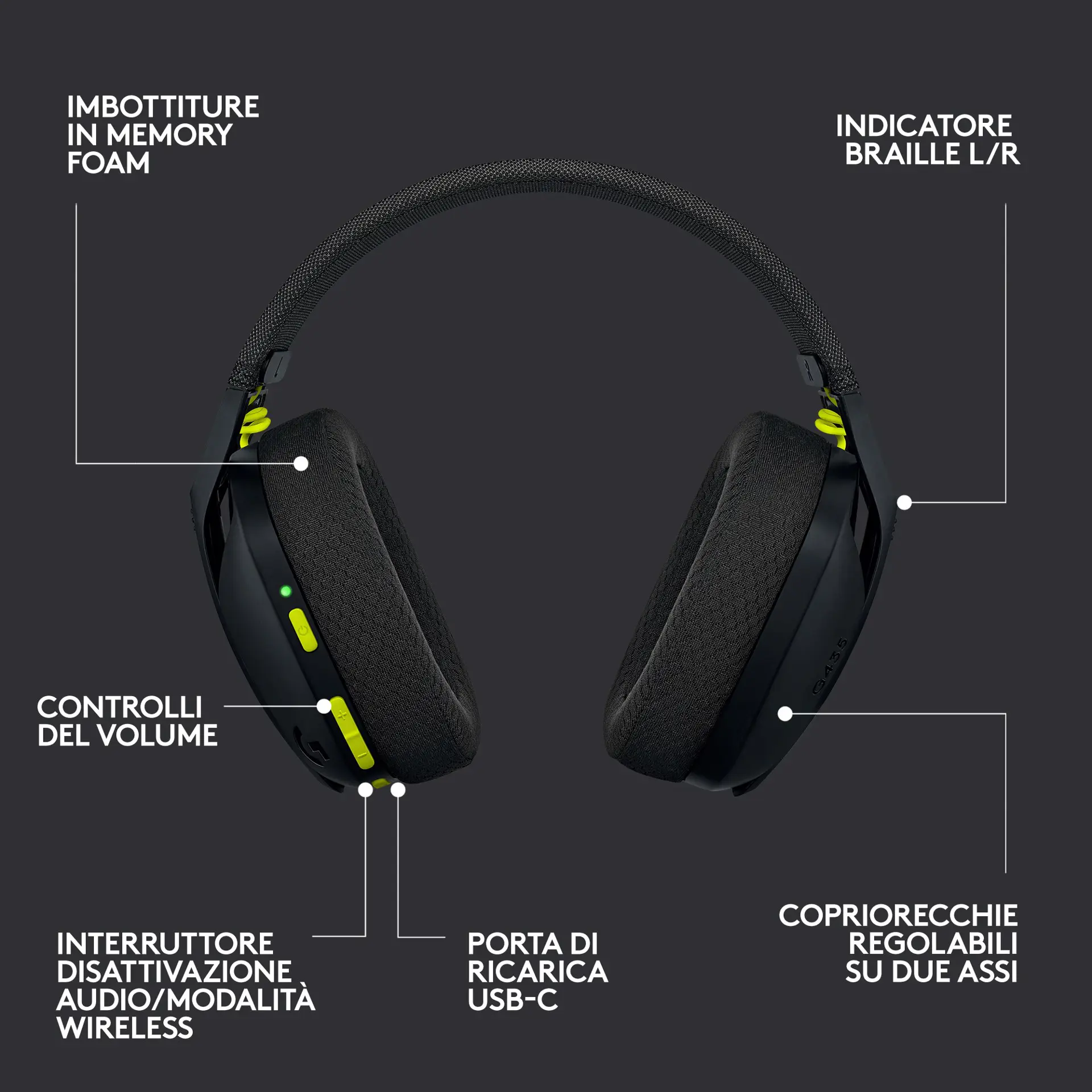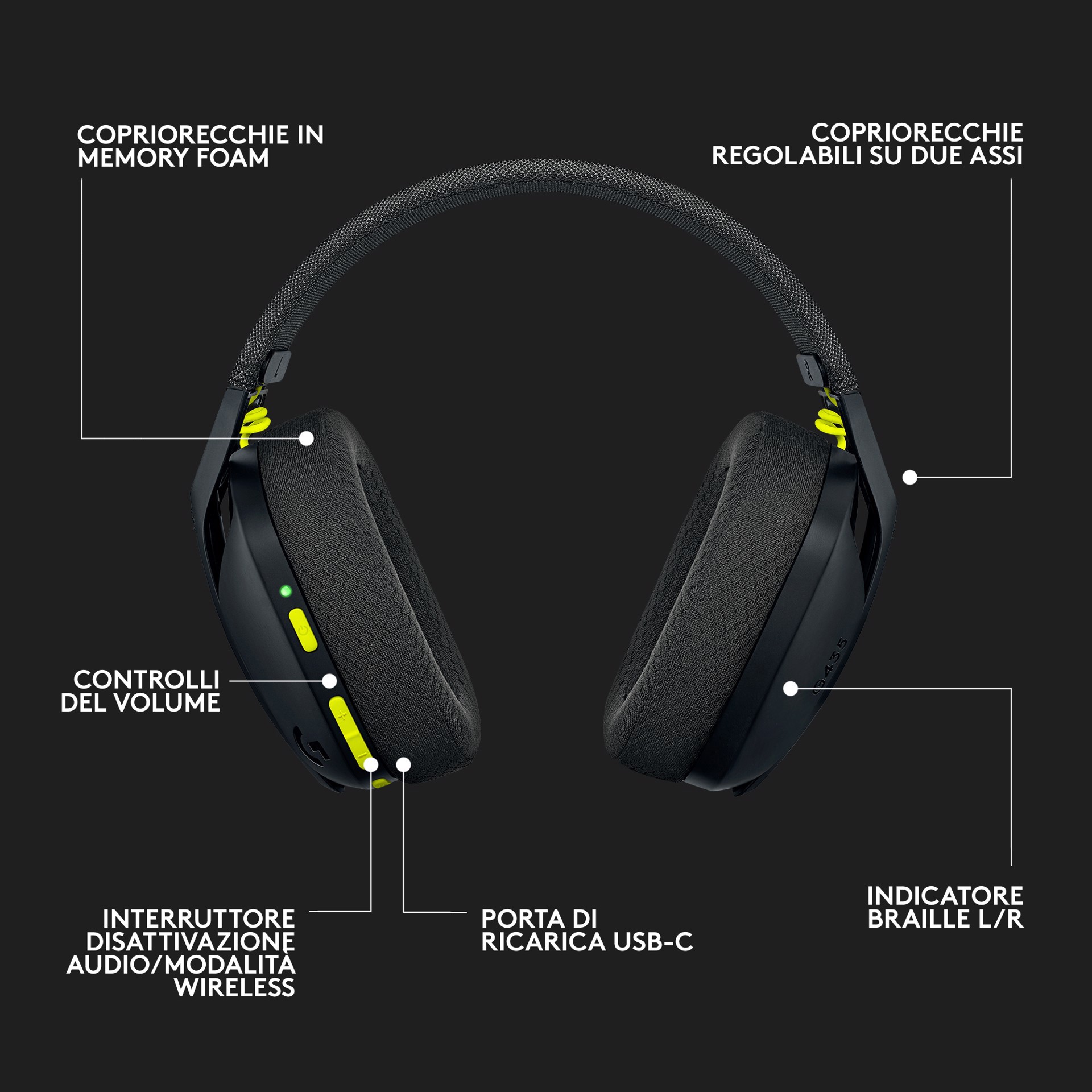 Gioca, riproduci musica e connettiti con gli amici. La cuffia con microfono per gaming G435 può essere collegata al PC, al telefono e ad altri dispositivi tramite tecnologia wireless LIGHTSPEED di livello gaming e Bluetooth®. La qualità audio è straordinaria e i microfoni beamforming riducono i rumori di fondo. Inoltre, è realizzata con almeno il 22% di plastica riciclata. Il divertimento non finisce mai con G435.