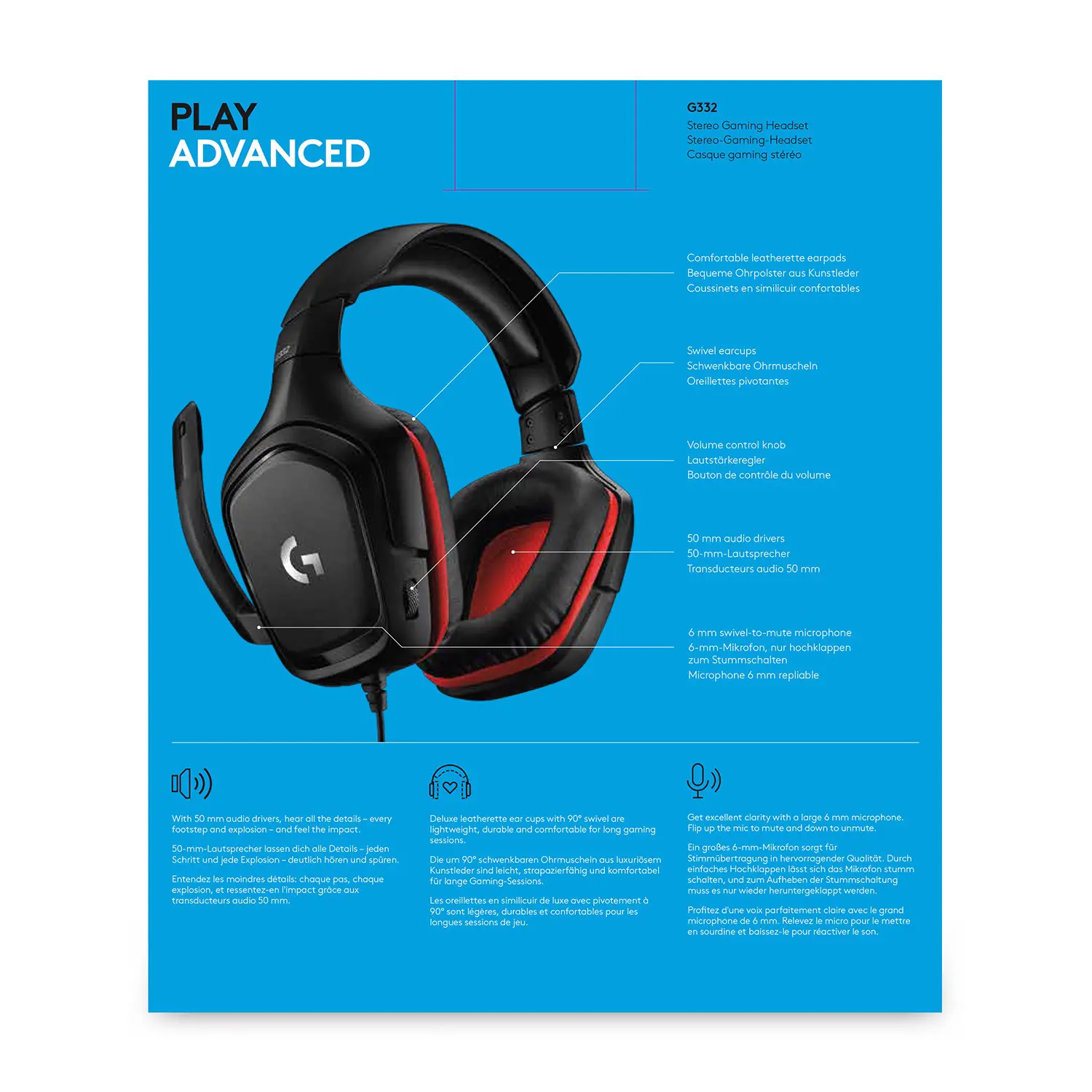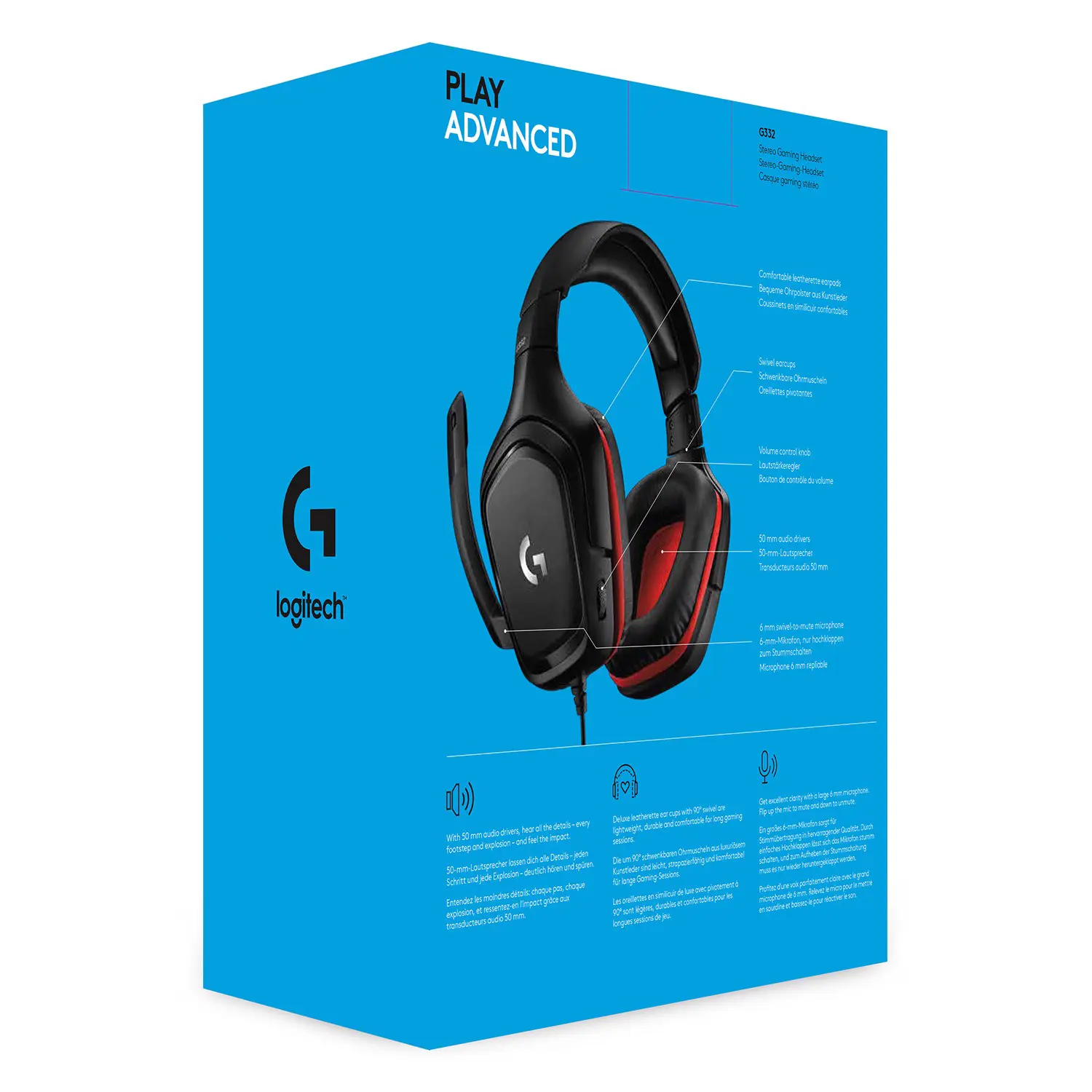 Logitech G G332, Cablato, Giocare, 20 - 20000 Hz, 280 g, Auricolare, Nero, Rosso