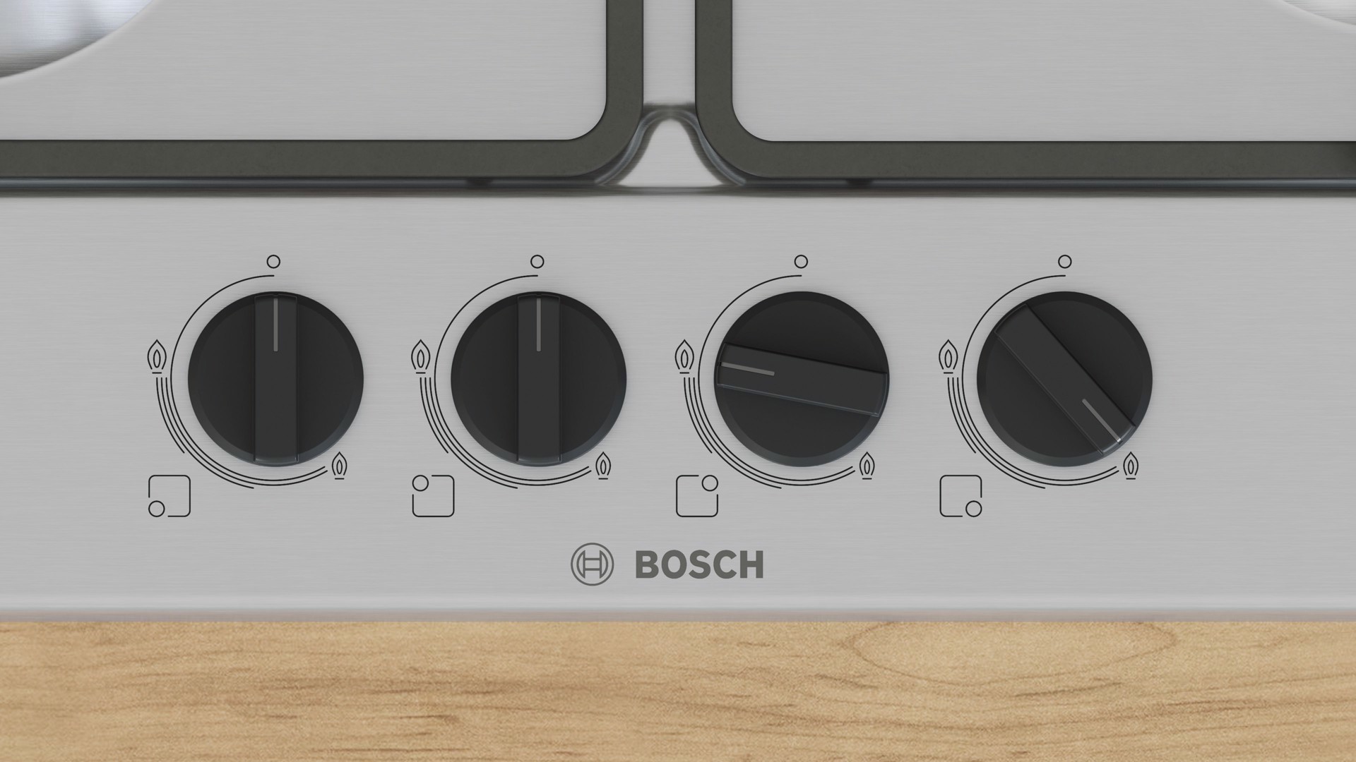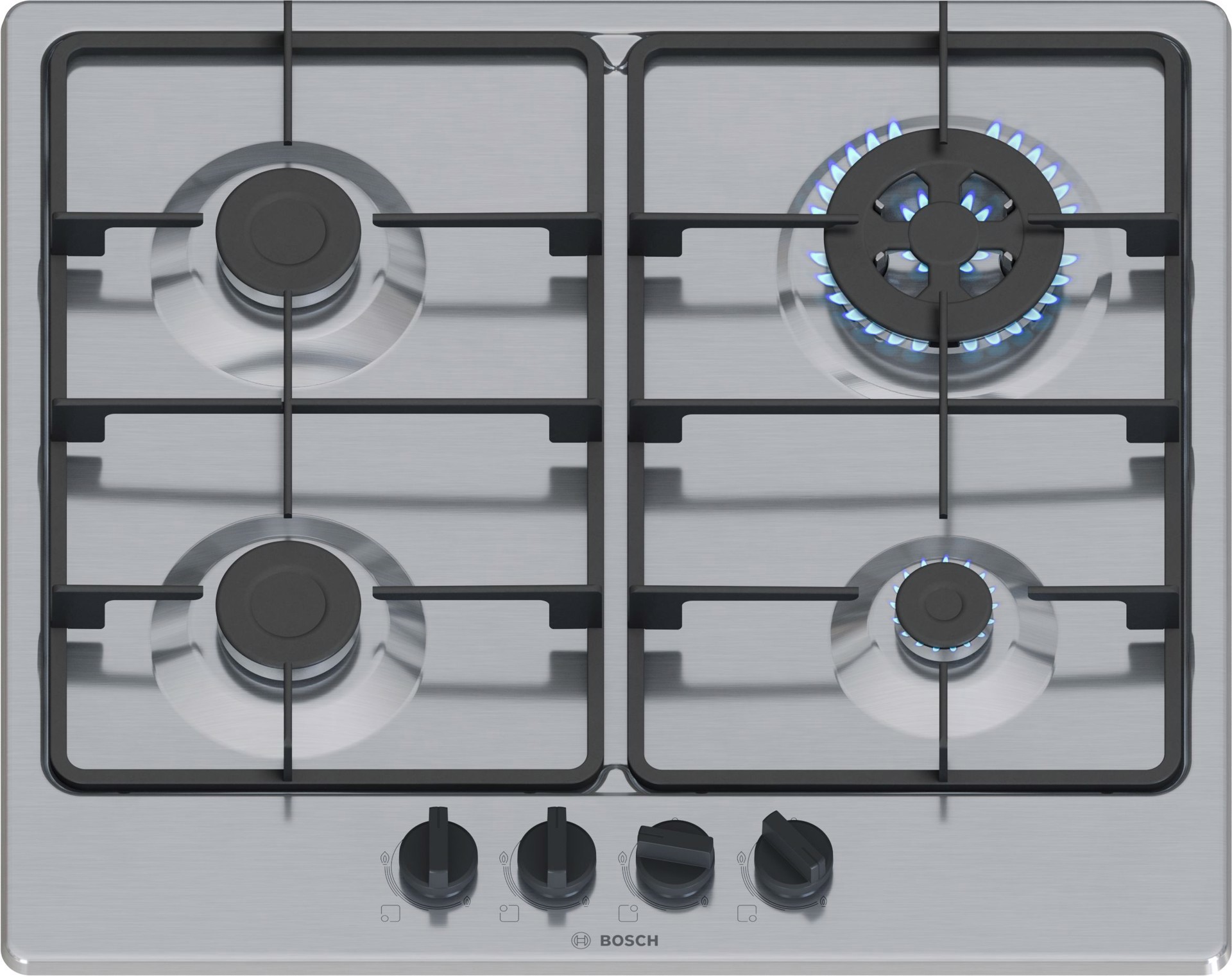 Bosch Serie 4 PGH6B5K60 , Piano cottura a gas, 60 cm, Acciaio inox, Acciaio inox, Da incasso, 58 cm, Gas, Acciaio inox, 4 Fornello(i)