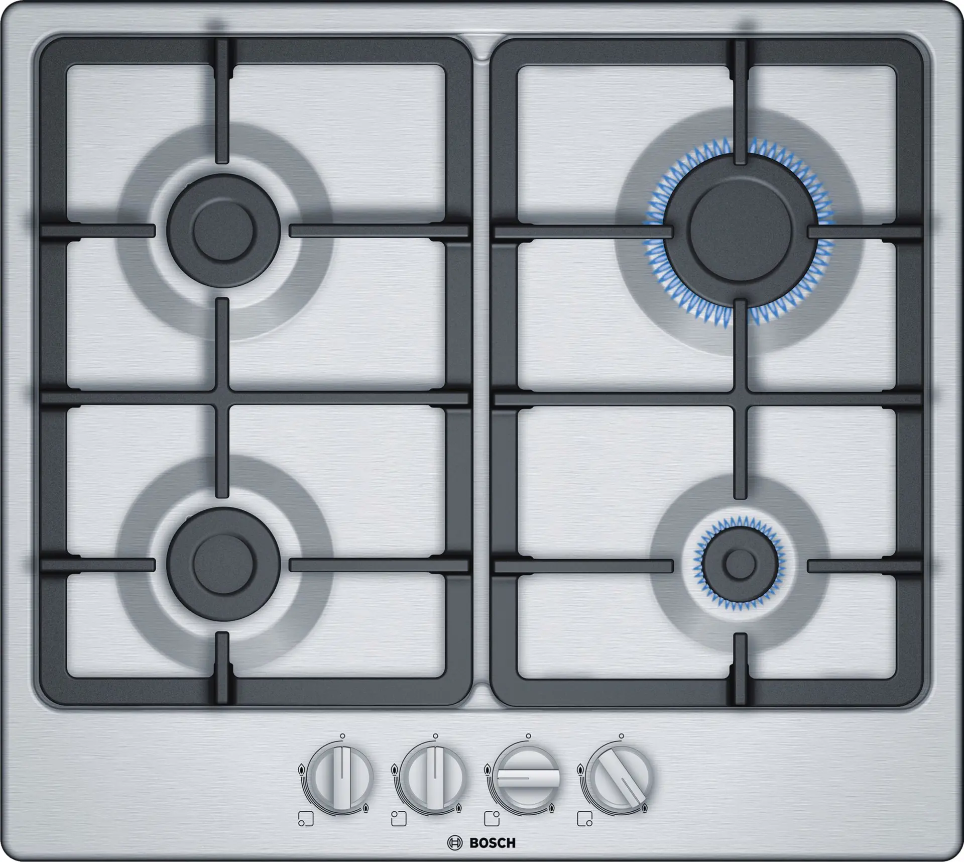 Bosch Serie 4 PGP6B5B90, Acciaio inossidabile, Da incasso, 60 cm, Gas, Acciaio inossidabile, 4 Fornello(i)