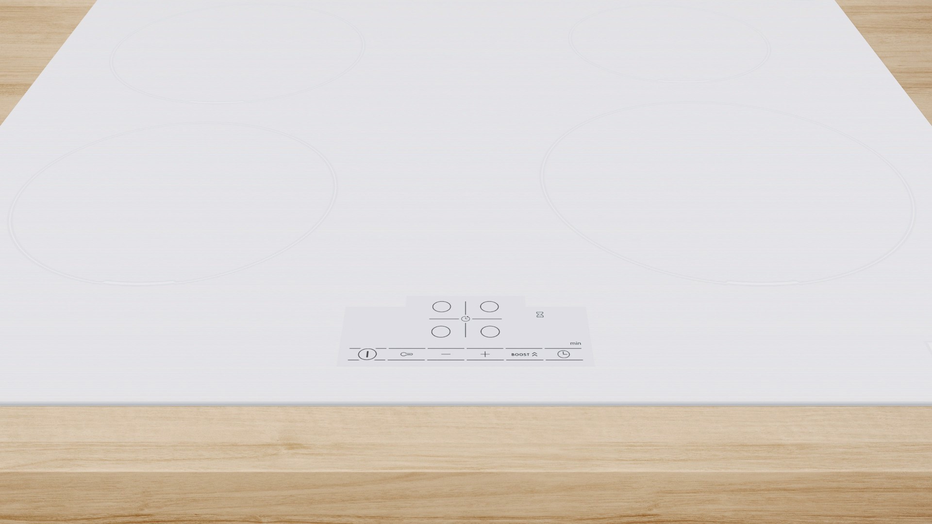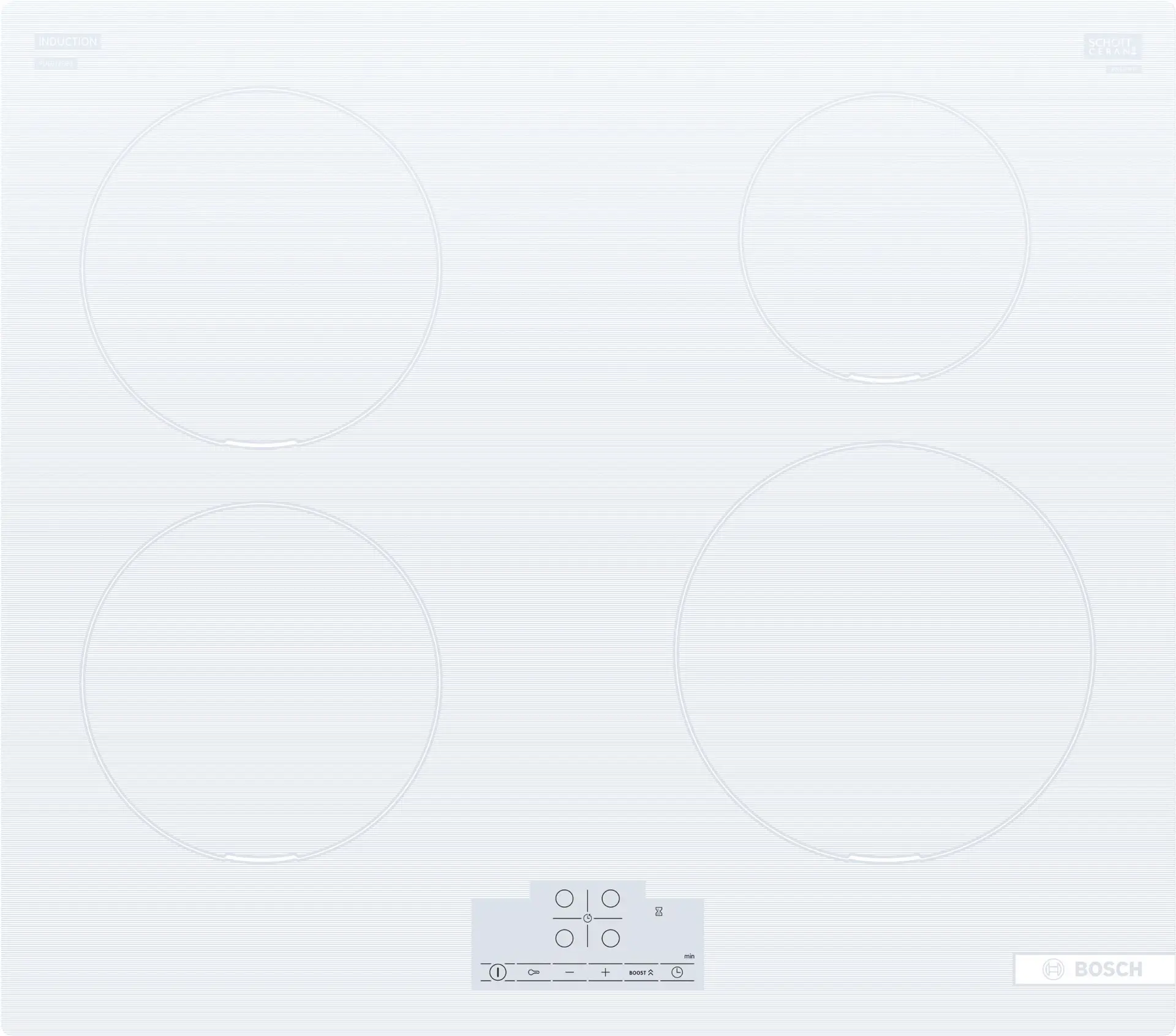 Bosch Serie 6 PUE612BB1E Serie 4 Piano cottura a induzione 60 cm 4 zone standard Bianco, Bianco, Da incasso, 60 cm, Piano cottura a induzione, Vetro-ceramica, 4 Fornello(i)