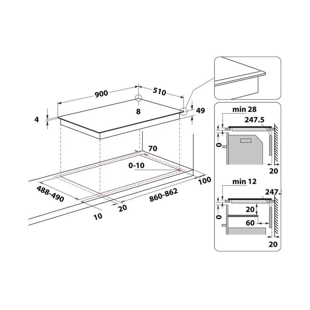 | Dimensione della larghezza del piano cottura | 90 cm |