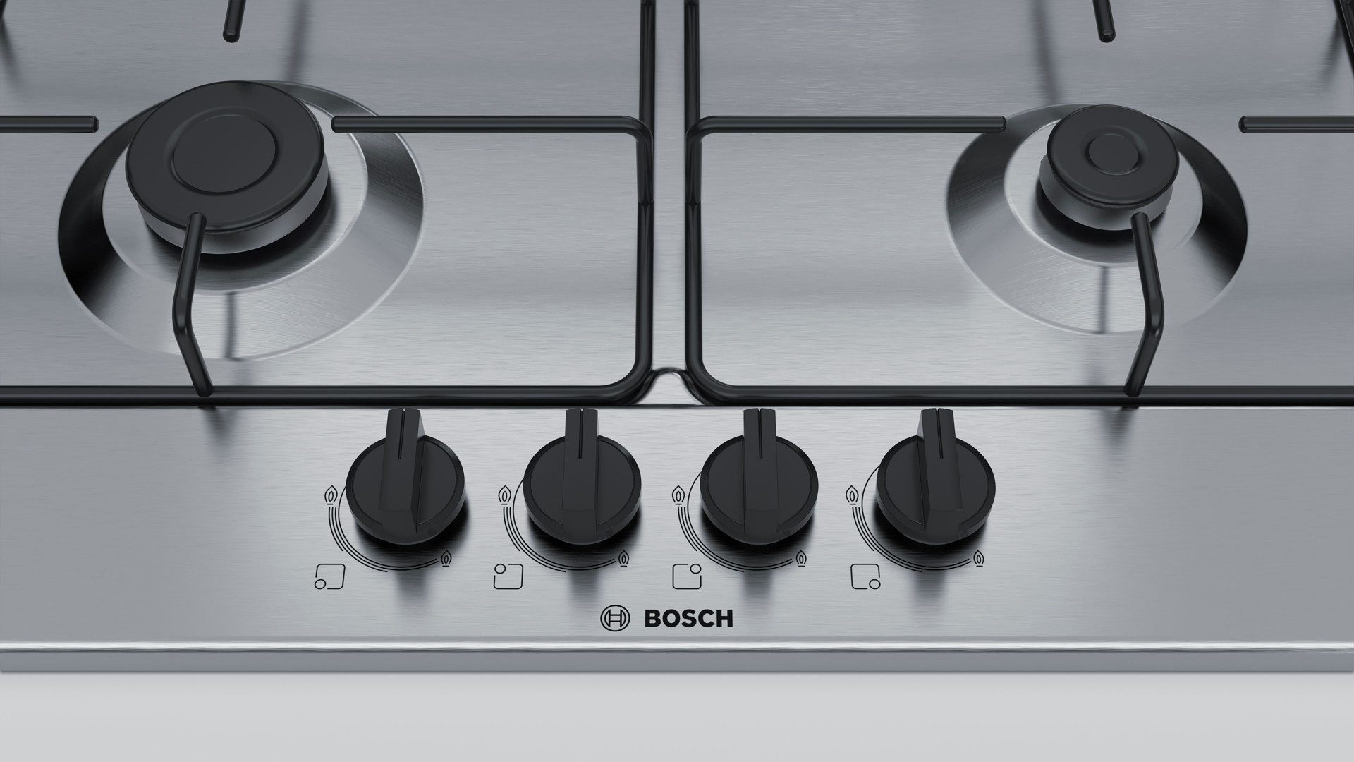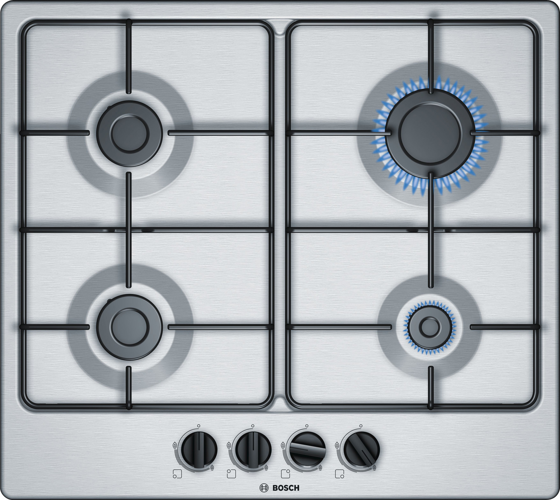 Bosch Serie 4 PGP6B5B85, Acciaio inossidabile, Da incasso, 58 cm, Gas, Acciaio inossidabile, 4 Fornello(i)