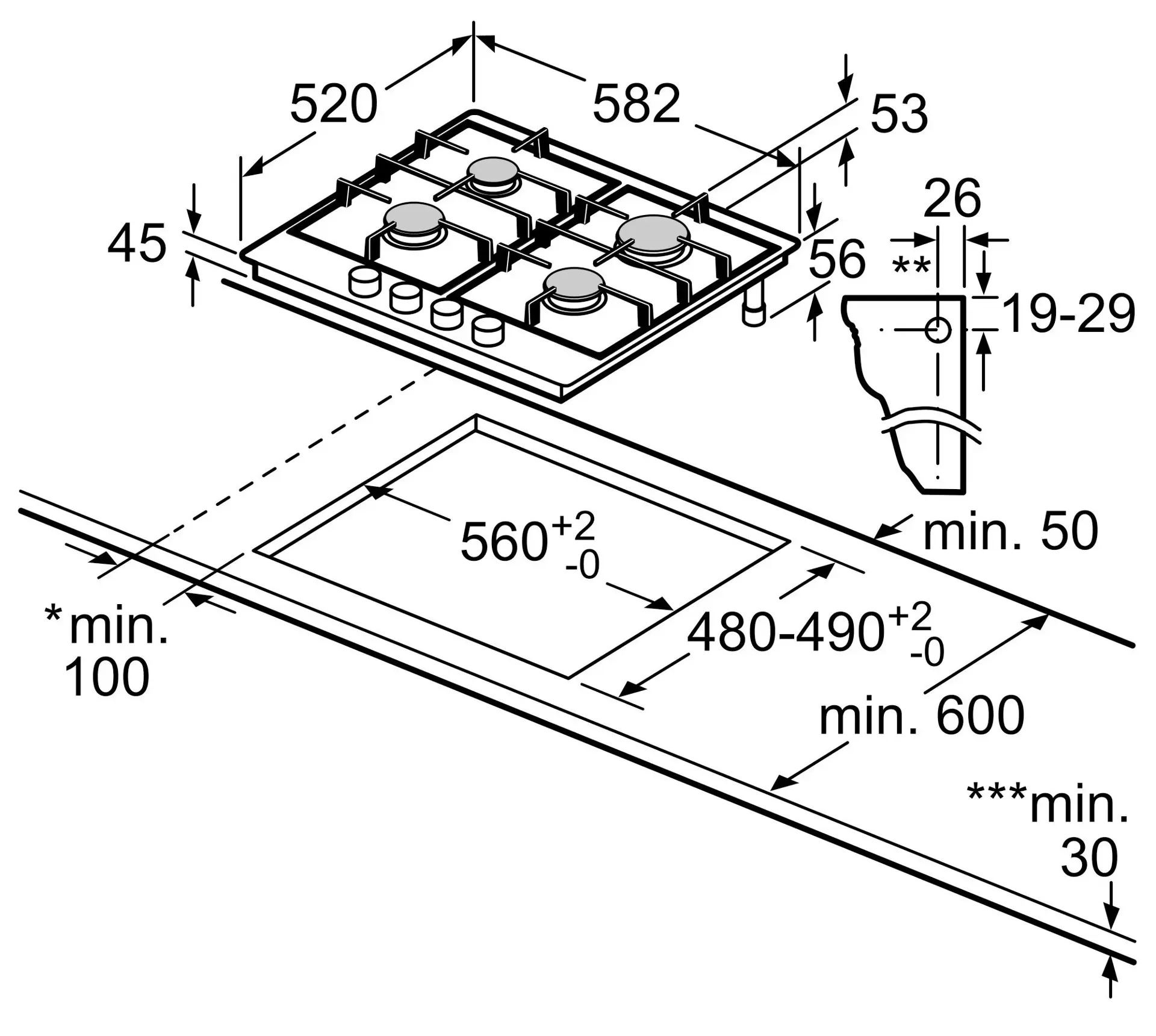 Bosch Serie 4 PGP6B5B85 piano cottura Acciaio inossidabile Da incasso 58 cm Gas 4 Fornello(i)