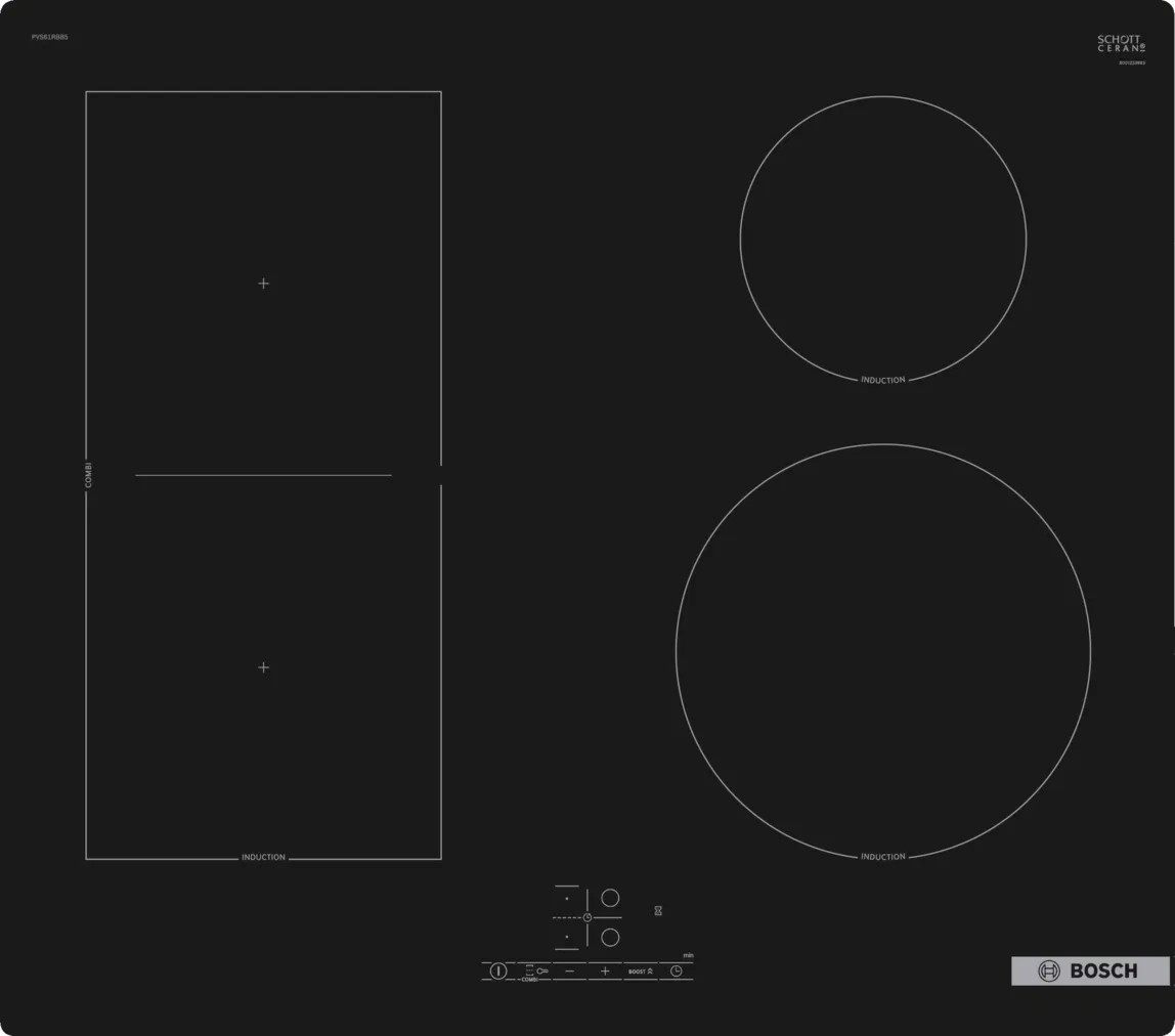 Bosch Serie 4 PVS61RBB5E, Nero, Da incasso, 60 cm, Piano cottura a induzione, Vetro-ceramica, 4 Fornello(i)