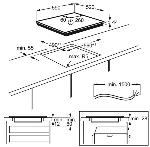 | Dimensione della larghezza del piano cottura | 59 cm |