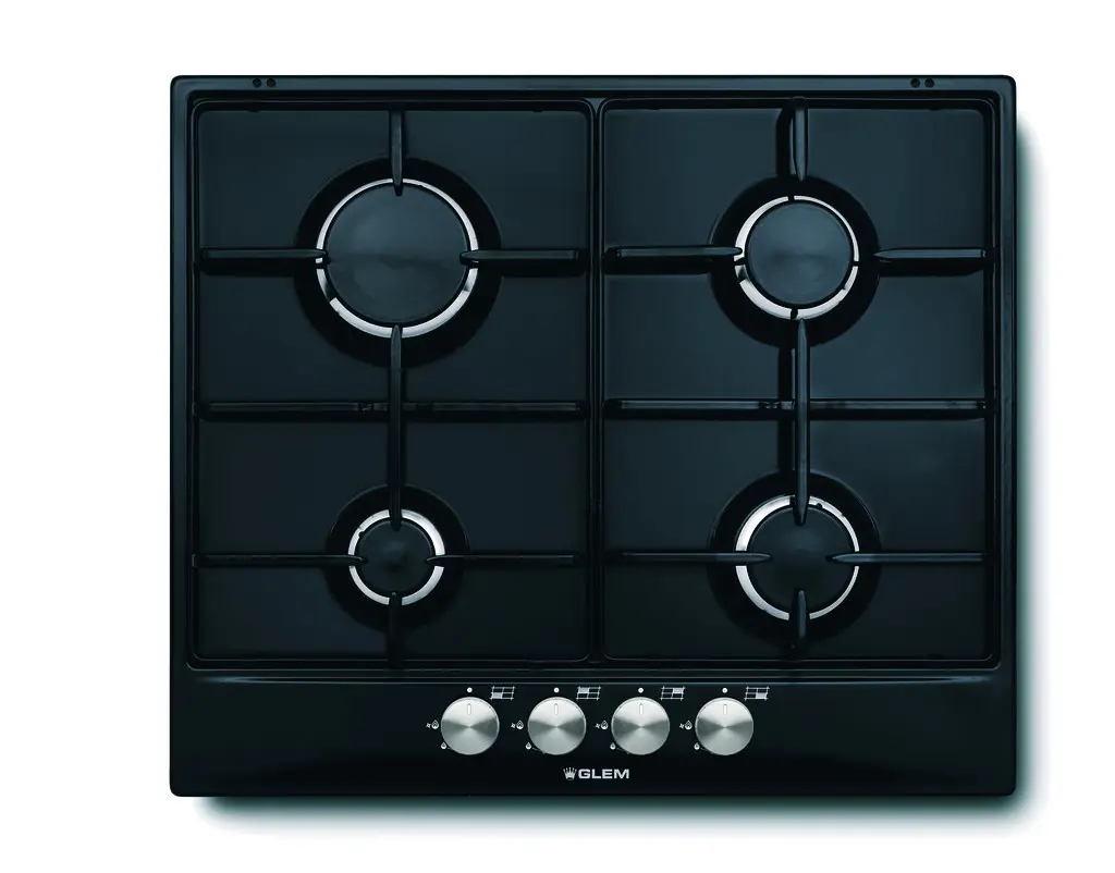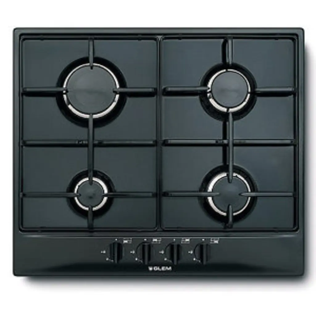Piano cottura da 60 cm. 4 fuochi gas. - davanti sx: ausiliario 1000 W. - dietro sx: rapido 3000 W. - davanti dx: semirapido 1750 W. - dietro dx: semirapido 1750 W. Accensione sottomanopola. Security gas system. Griglie in piattina