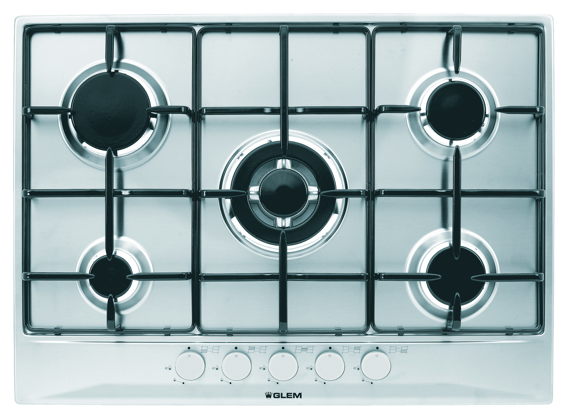 Glem Gas GT755IX, Acciaio inossidabile, Da incasso, Gas, 5 Fornello(i), 5 Fornello(i), Smaltato