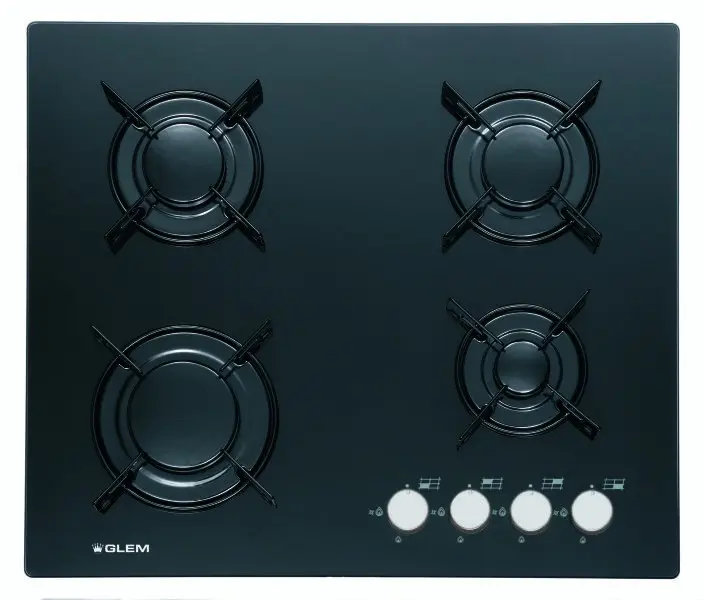 Glem Gas GV64BK, Nero, Da incasso, Gas, Smaltato, 4 Fornello(i), 4 Fornello(i)