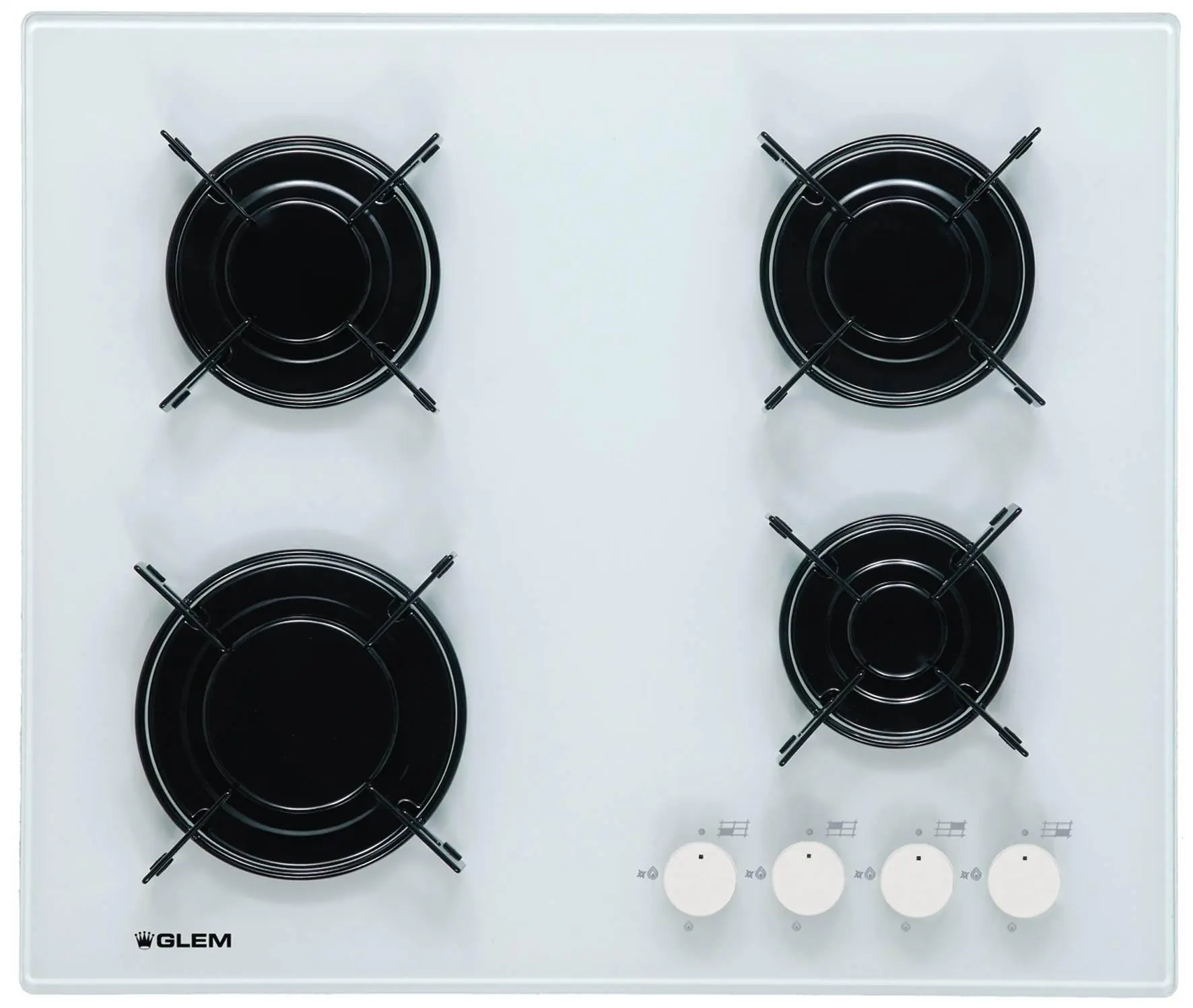 Glem Gas GV64WH, Bianco, Da incasso, Gas, Smaltato, 4 Fornello(i), 4 Fornello(i)