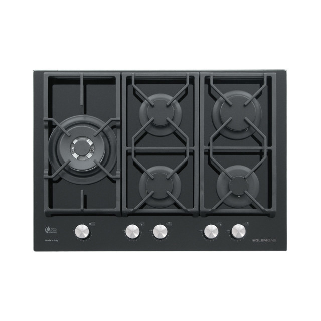 Glem Gas GV75TXBK, Nero, Da incasso, 75 cm, Gas, Vetro temperato, 5 Fornello(i)