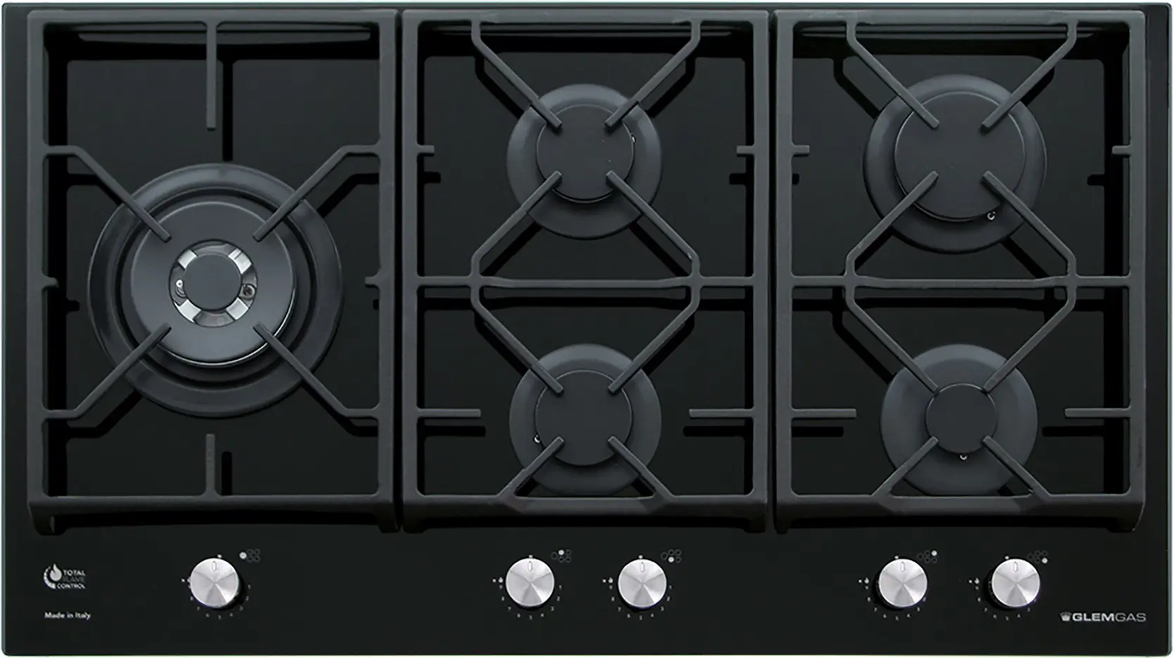 Glem Gas GV95TXBK, Nero, Da incasso, 90 cm, Gas, 5 Fornello(i), 5 Fornello(i)