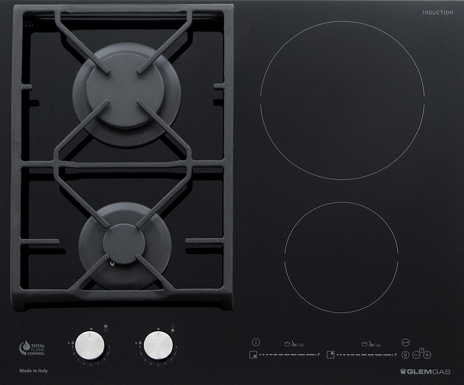 Glem Gas GVI622XBK, Nero, Da incasso, 60 cm, Combi, Vetro-ceramica, 4 Fornello(i)
