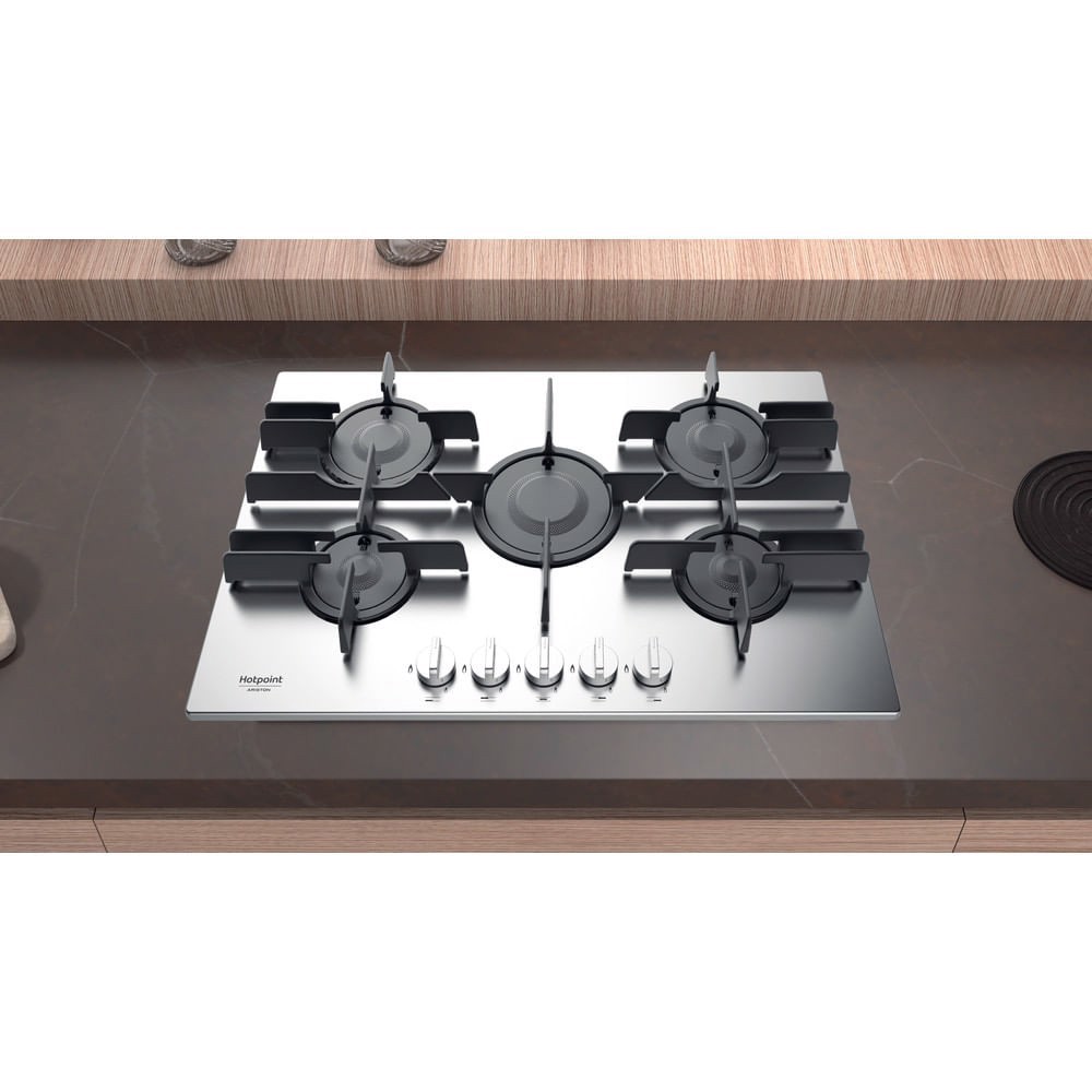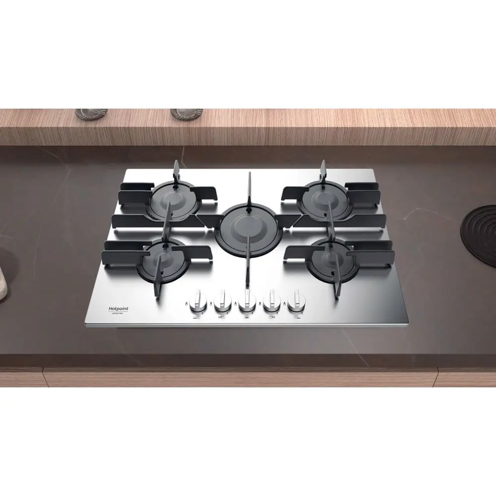 Hotpoint FTGHL 751 D/IX/HA, Acciaio inossidabile, Da incasso, 75 cm, Gas, Acciaio inossidabile, 5 Fornello(i)