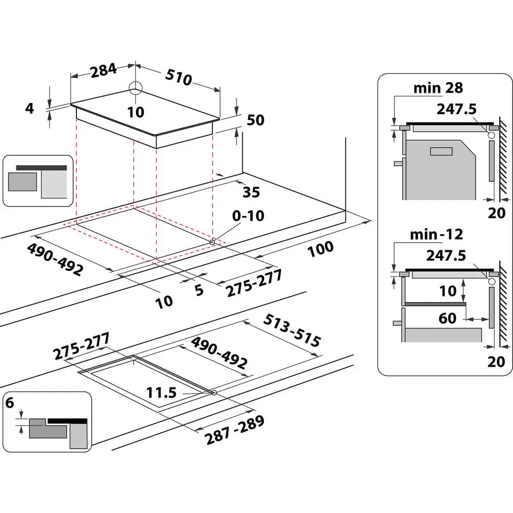 Dimensione della larghezza del piano cottura: 29 cm