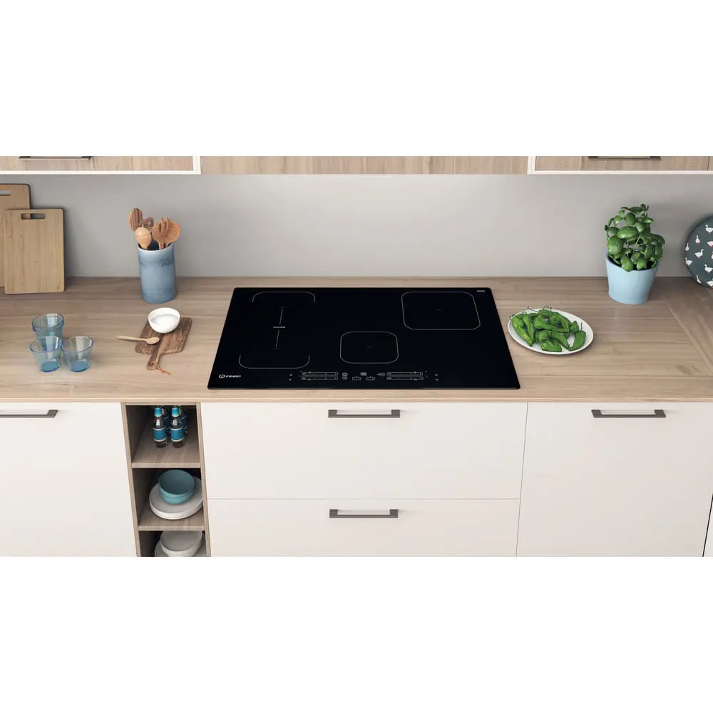 Indesit IB 21B77 NE, Nero, Da incasso, 77 cm, Piano cottura a induzione, Ceramica, 4 Fornello(i)