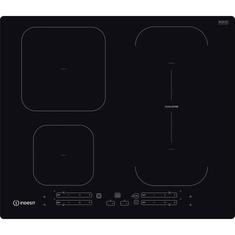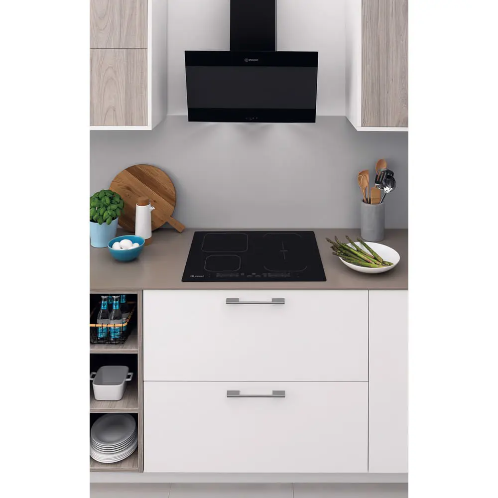 Indesit IB 65B60 NE, Nero, Da incasso, 59 cm, Piano cottura a induzione, Vetro-ceramica, 4 Fornello(i)