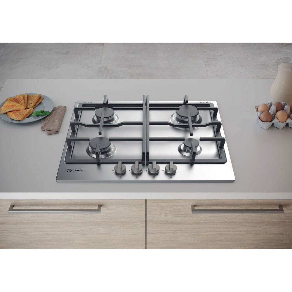 Indesit THP 641 IX/I, Acciaio inossidabile, Da incasso, 58 cm, Gas, Acciaio inossidabile, 4 Fornello(i)