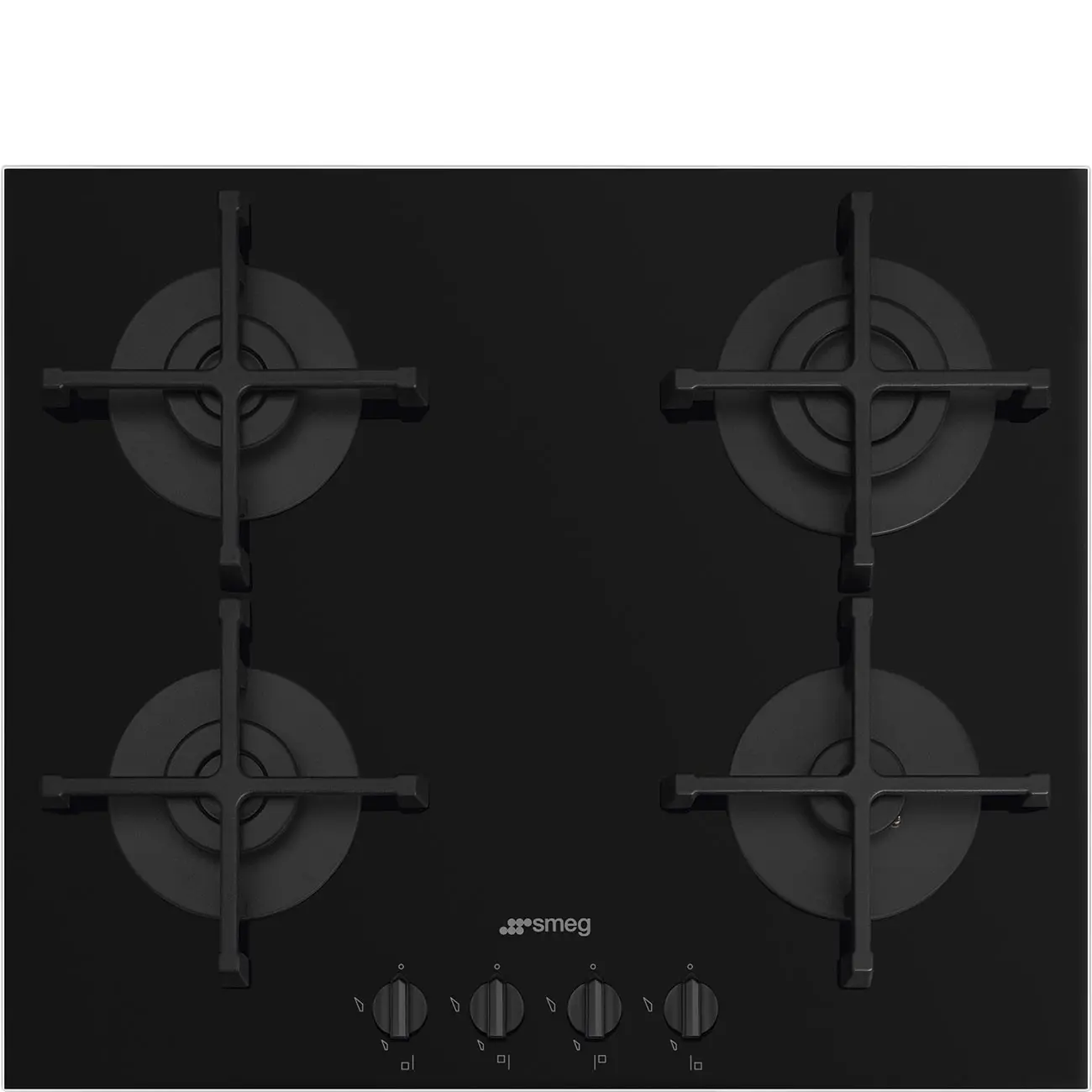 Smeg Universal PV264B, Nero, Da incasso, 60 cm, Gas, Vetro, 4 Fornello(i)