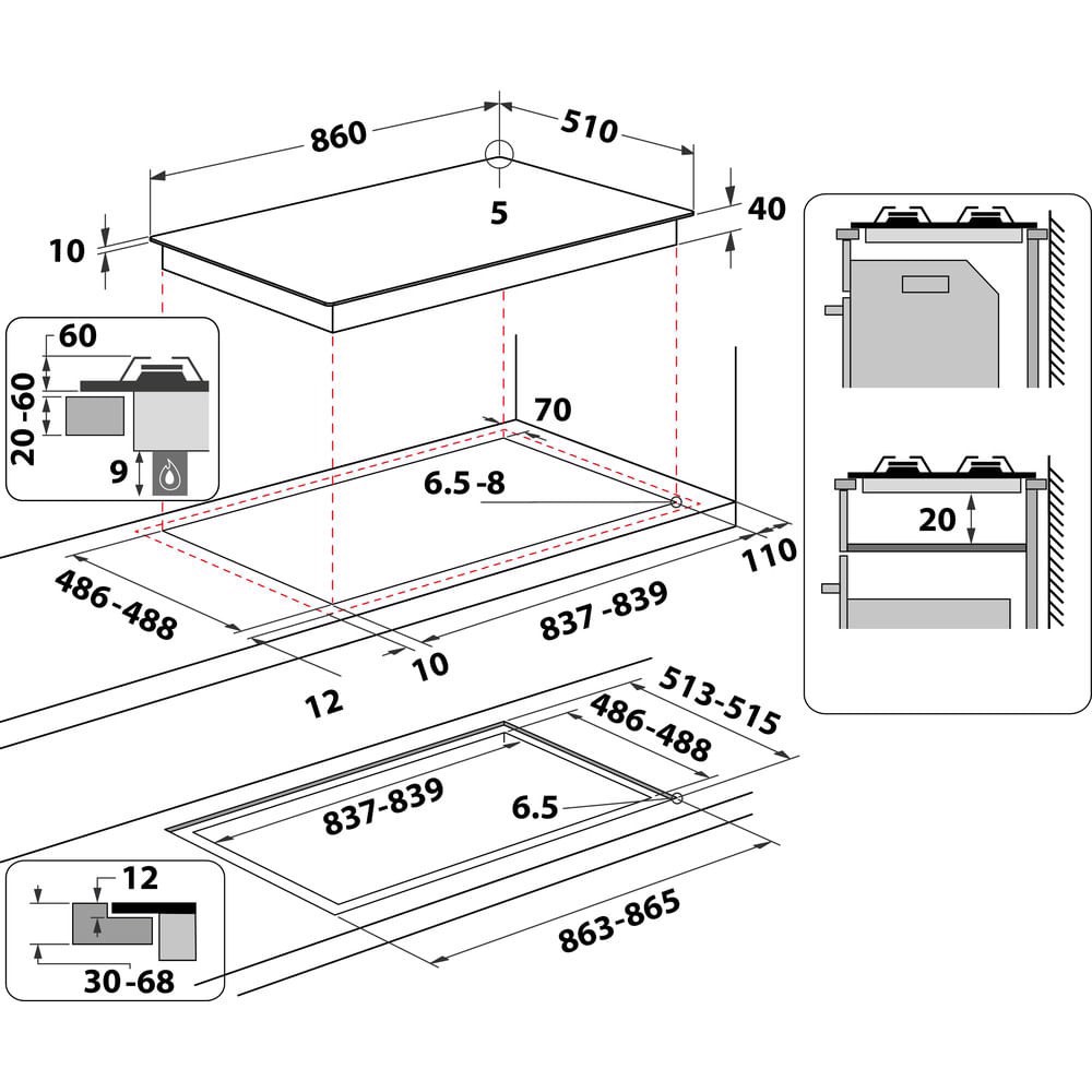 | Dimensione della larghezza del piano cottura | 90 cm |