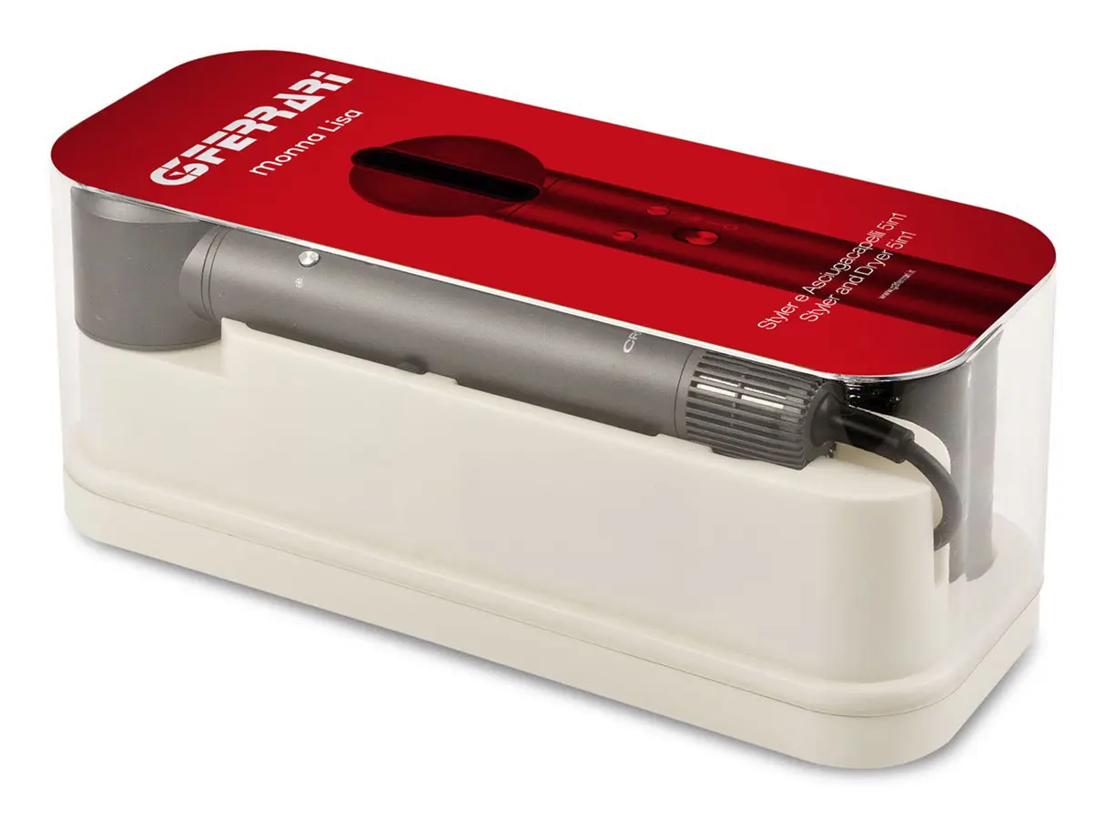 G3 Ferrari Monna Lisa. Tipo motore: dC, Velocità motore: 110000 Giri/min, Temperatura (max): 72 °C. Colore del prodotto: Nero, Colorazione superficie: Monocromatico. Potenza: 1300 W, Tensione di ingresso AC: 220 - 240 V, Frequenza di ingresso AC: 50/60 Hz. Larghezza: 95 mm, Profondità: 65 mm, Altezza: 330 mm. Quantità per pacco: 1 pz, Tipo di imballo: Scatola