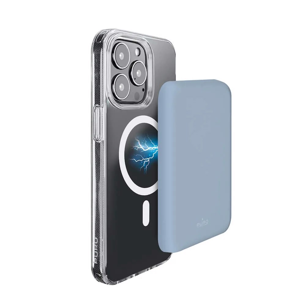 Slim Power Mag di Puro è la power bank compatibile MagSafe che sfrutta il magnetismo per la ricarica dell’ iPhone anche durante gli spostamenti offrendo la massima libertà di movimento.