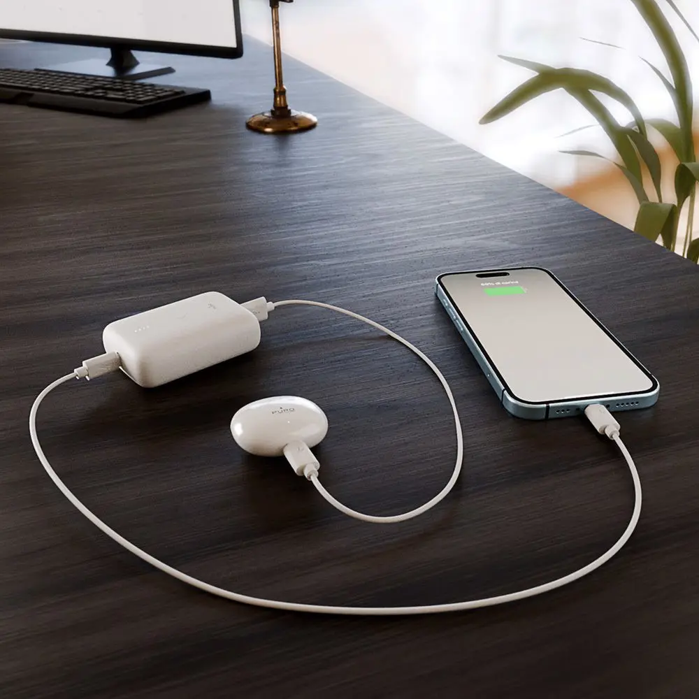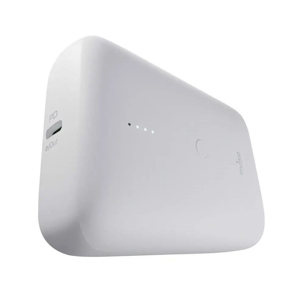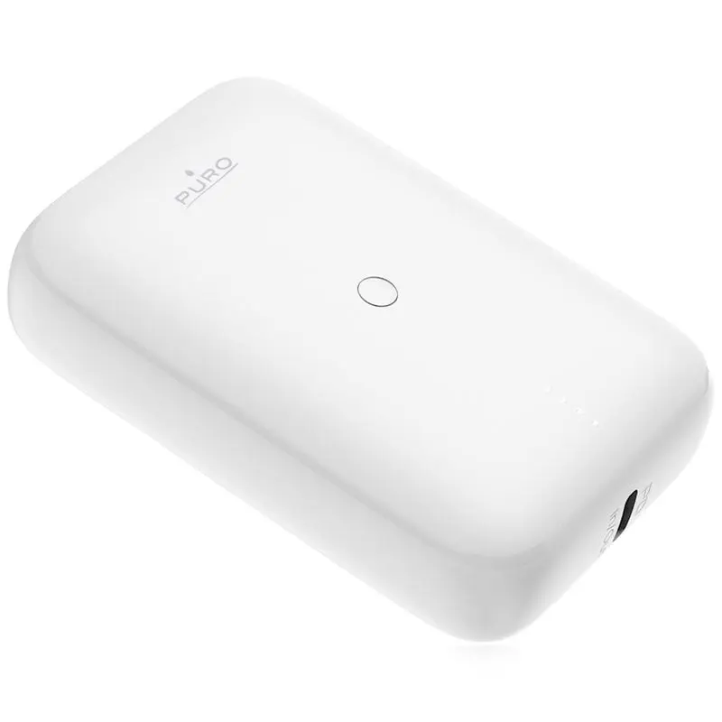 PURO Power Mini 10. Capacità della batteria: 10000 mAh, Tecnologia batteria: Ioni di Litio, Voltaggio della batteria: 3,7 V. Porte di uscita USB di tipo A: 1, Quantità di porte USB Tipo C: 1. Potenza di uscita totale: 22,5 W. Colore del prodotto: Bianco
