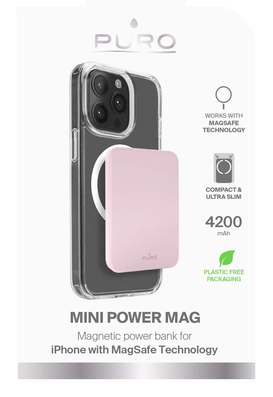 PURO PUFCBB40P2MAGROSE, 4000 mAh, Polimeri di litio (LiPo), Carica wireless, 5 W, Rosa