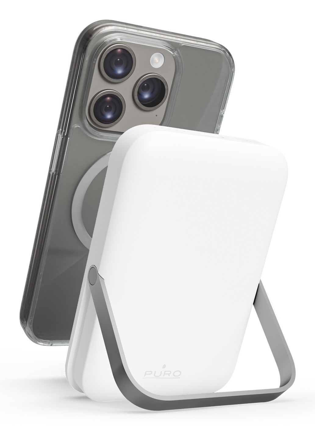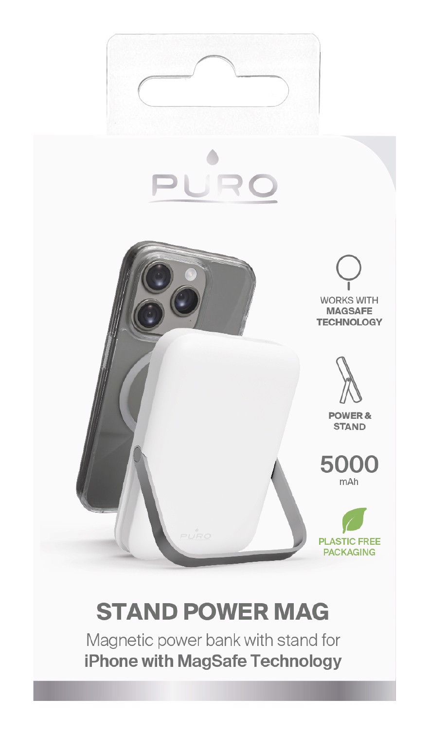 PURO Stand Power Mag, 5000 mAh, Polimeri di litio (LiPo), Carica wireless, 5 V, Argento, Bianco