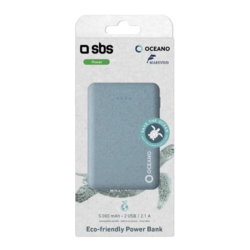 SBS Power Bank eco-friendly da 5000 mAh, 5000 mAh, Ioni di Litio, Blu