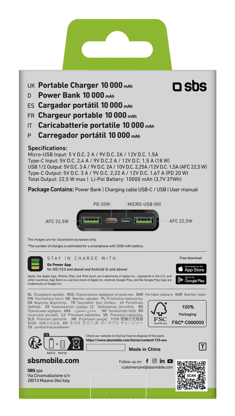 Può dare una carica completa al tuo telefono per 4 volte e 2 per il tablet (a seconda dell'uso e della batteria del device in carica).Quando anche il powerbank sarà scarico potrai alimentarlo attraverso la porta USB-C con il cavo incluso oppure attraverso la porta Micro-USB con un tuo cavo compatibile. I 4 LED di stato indicano l'energia residua all'interno del powerbank.