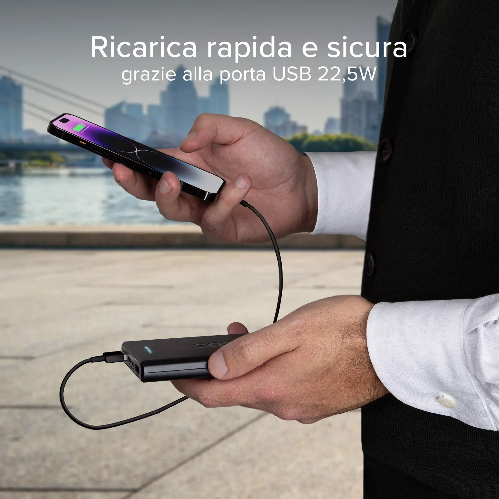 Il power bank da 10.000 mAh può essere utilizzato con qualsiasi smartphone, tablet, e-reader, speaker, smartwatch, auricolare TWS. Grazie alle due porte USB-A e alla porta USB-C potrai caricare fino a 3 device allo stesso tempo e dare tutta l'energia di cui hanno bisogno.