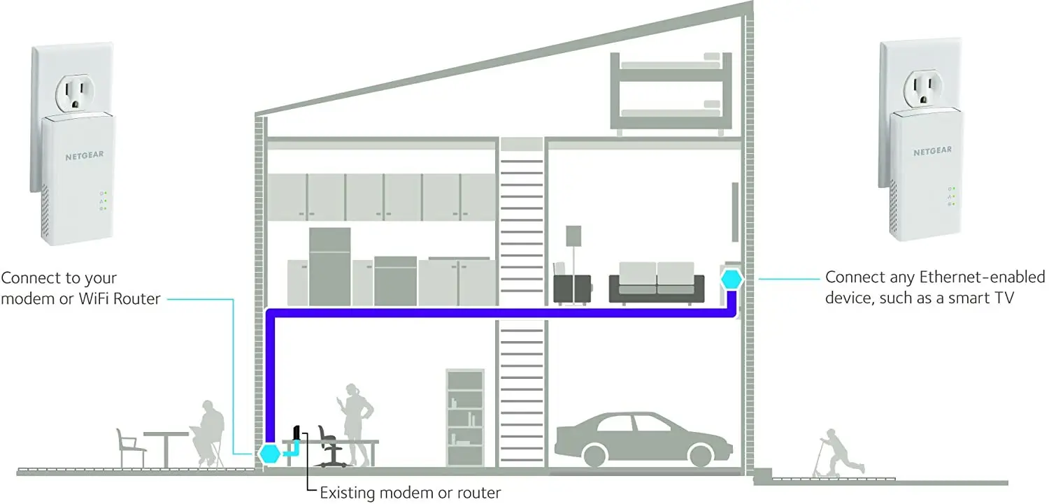 Netgear PowerLINE 1000 + WiFi, 1000 Mbit/s, IEEE 802.11ac,IEEE 802.11b,IEEE 802.11g,IEEE 802.11n,IEEE 802.3,IEEE 802.3ab,IEEE 802.3u, Gigabit Ethernet, 10,100,1000 Mbit/s, Wi-Fi 5 (802.11ac), 802.11a,802.11b,802.11g,Wi-Fi 4 (802.11n),Wi-Fi 5 (802.11a...