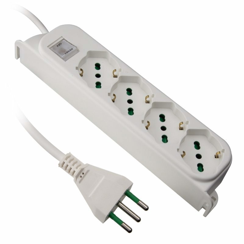 Ekon Multipresa con 4 prese bipasso italo-tedesche, 1,5 m, Interno, Tipo L, Tipo L, Dritto, Bianco