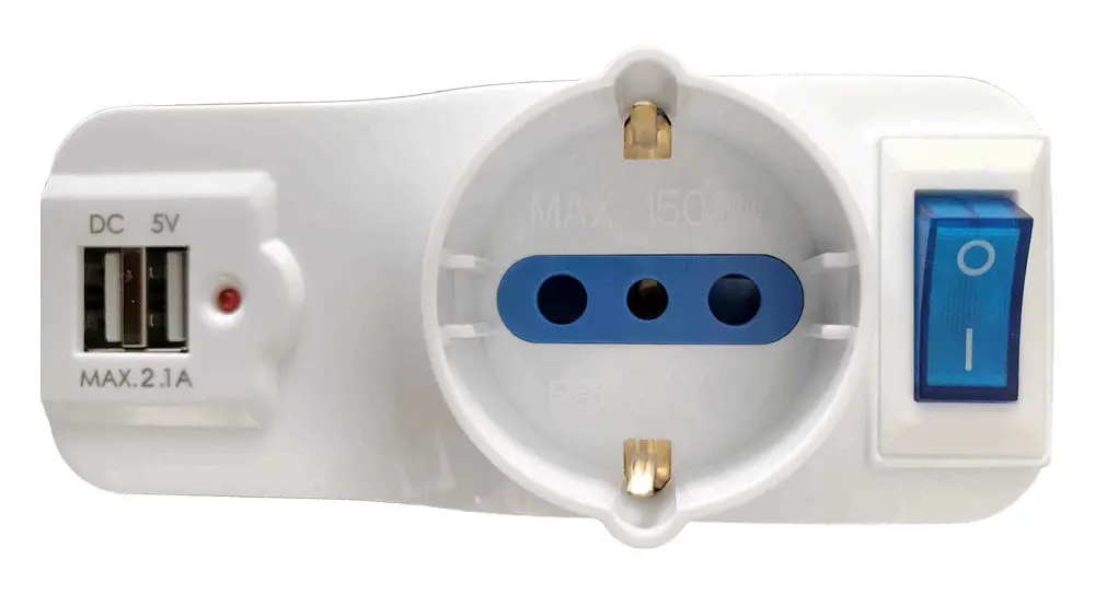 Adattatore rotante,spina 16a bipasso+1 presa shucko + inte