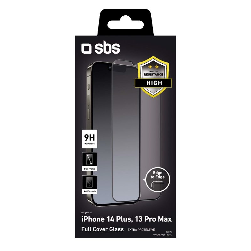 SBS Glass screen protector Full Cover per iPhone 13 Pro Max/iPhone 14 Plus, Apple, iPhone 13 Pro Max, Antigraffio, Resistente agli urti, Nero, 1 pz