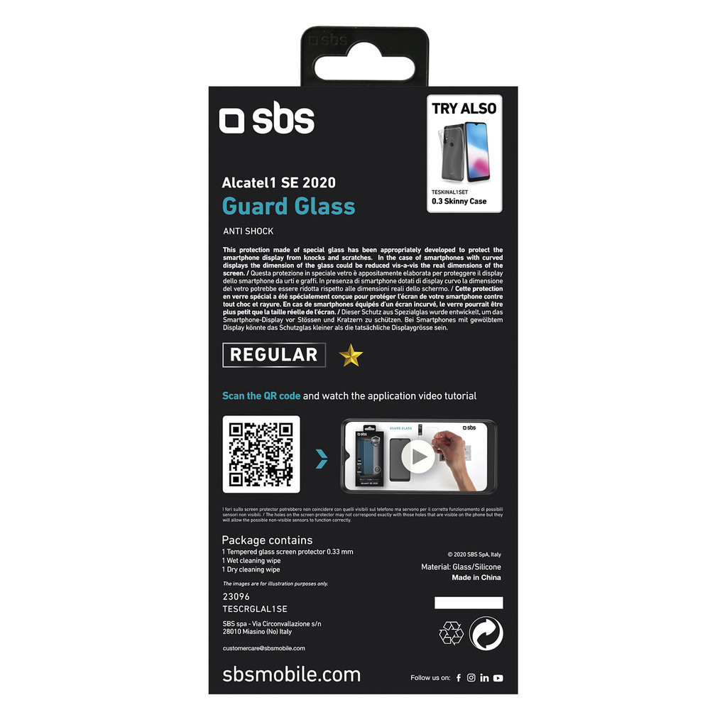 | Descrizione prodotto | Screen glass Alcatel 1 SE |
