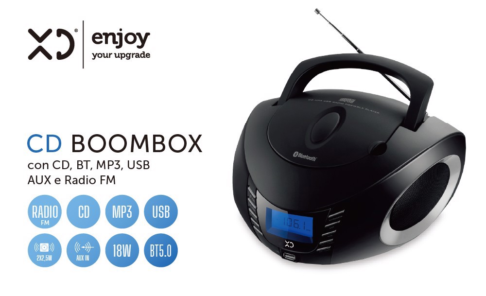 XD Enjoy XDUSB882BKSIL, Digitale, FM, 87,5 - 108 MHz, Lettore, CD-R, CD-RW, 5 W