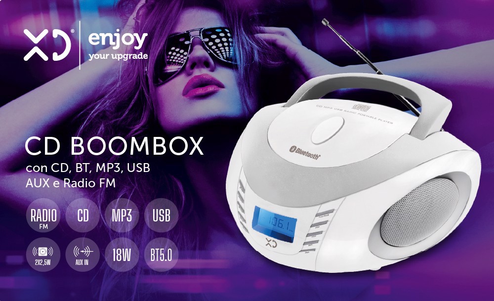 XD Enjoy XDUSB882WHSIL, Digitale, FM, 87,5 - 108 MHz, Lettore, CD-R, CD-RW, 5 W