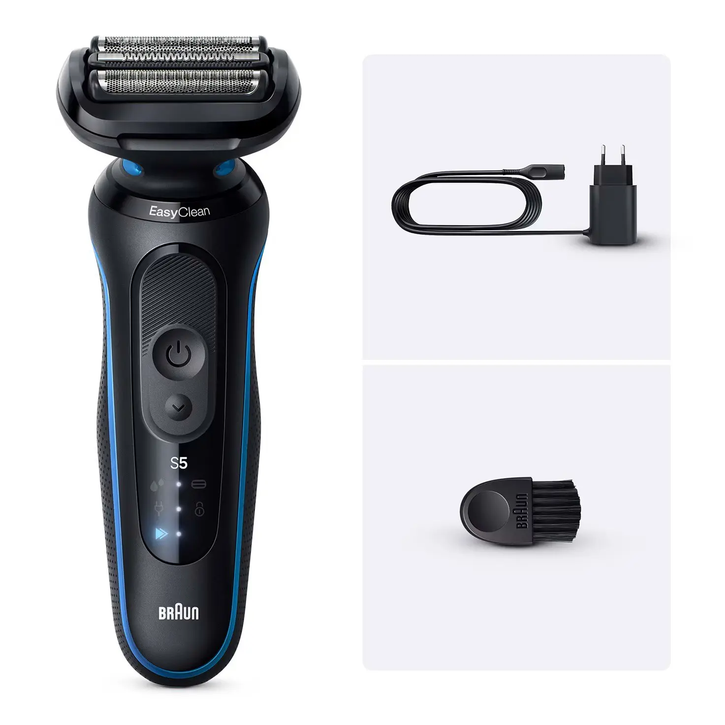 Braun Series 5 52-B1000s. Sistema di rasatura: Rasoio, Colore del prodotto: Nero, Tipo di controllo: Pulsanti. Alimentazione: Batteria, Tecnologia batteria: Ioni di Litio, Tempo di ricarica: 1 h. Larghezza: 64 mm, Profondità: 51 mm, Altezza: 166 mm. Tipo di imballo: Scatola. Quantità per pacco: 1 pz