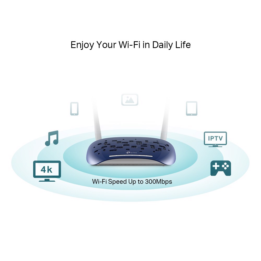 Modem router adsl/vdsl 2.4ghz wifi300mbps,fr 100mbps,4lan