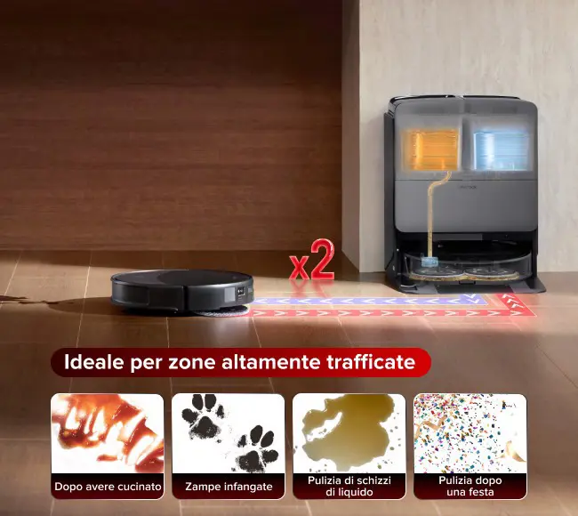Roborock Saros 20X è progettato per adattarsi a qualsiasi ambiente domestico. Il nuovo telaio AdaptiLift® 3.0 supera le soglie di 4,5 + 4,3 cm. Il sistema autonomo StarSight 2.0 consente una mappatura più rapida, un posizionamento più preciso, un riconoscimento degli ostacoli più accurato e lo spostamento in spazi più bassi. Grazie alla sua tripla struttura sollevabile, al doppio sistema anti-groviglio e alla nuovissima RockDock®, la pulizia intelligente e senza sforzo diventa un gioco da ragazzi.