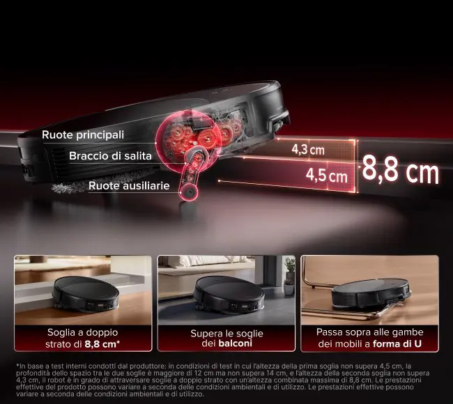 Capacità di superare ostacoli fino a8,8 cm