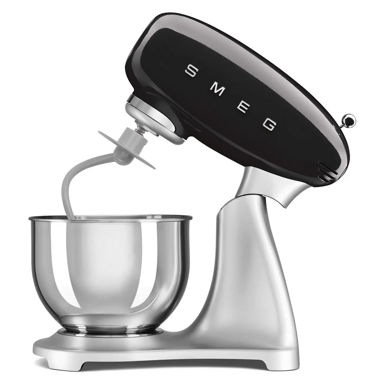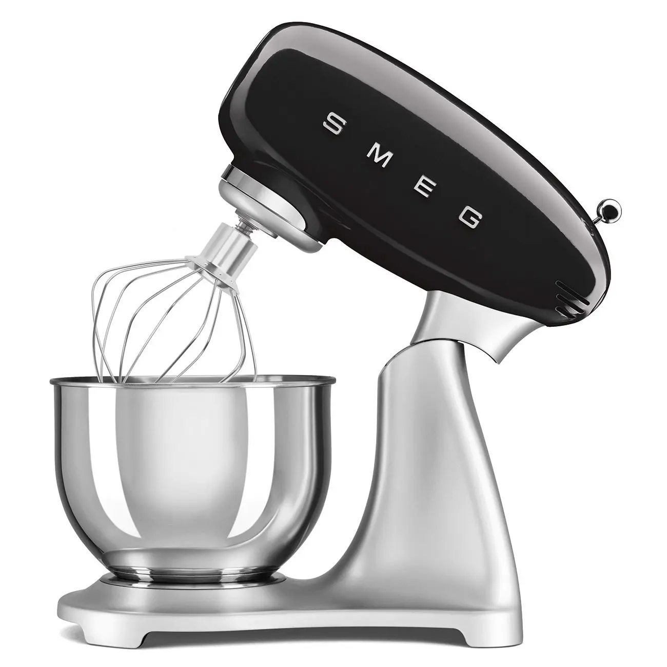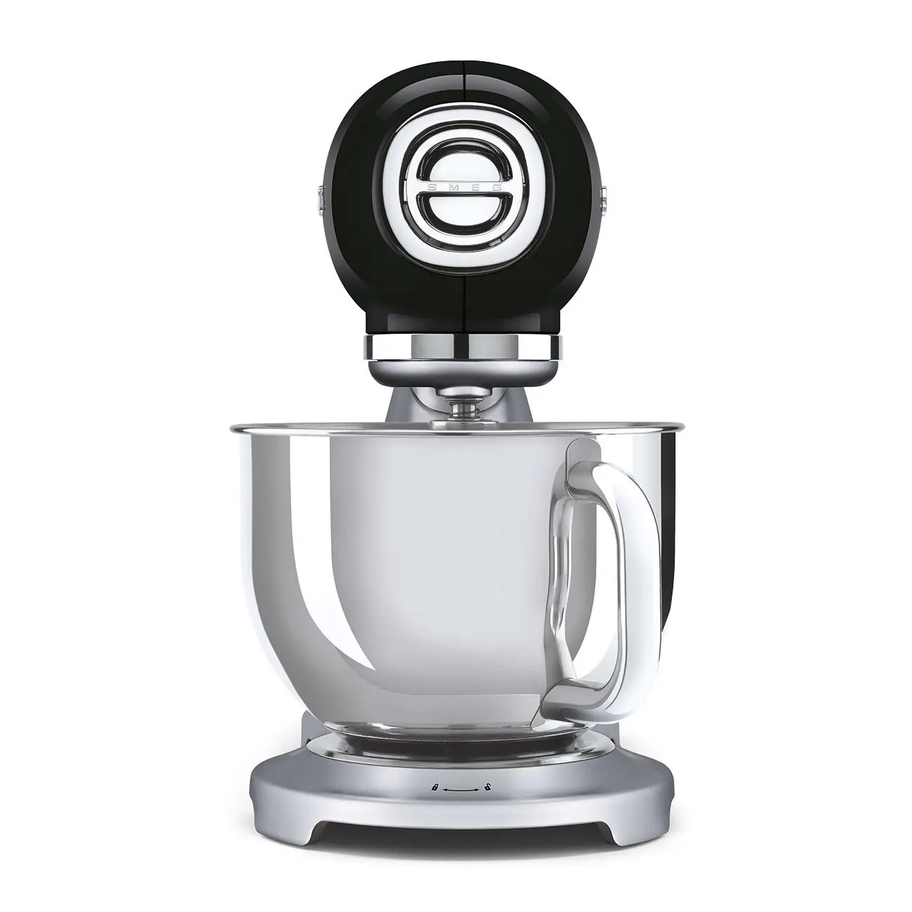 Smeg SMF04BLEU. Tipo: Sbattitore con base, Colore del prodotto: Nero, Funzioni mixer: Whisking. Materiale della scocca: Alluminio, Materiale ciotola: Acciaio inox, Materiali: Alluminio, Acciaio inox. Potenza: 800 W, Tensione di ingresso AC: 220-240 V, Frequenza di ingresso AC: 50-60 Hz. Larghezza: 405 mm, Profondità: 221 mm, Altezza: 378 mm. Larghezza imballo: 420 mm, Profondità imballo: 280 mm, Altezza imballo: 475 mm