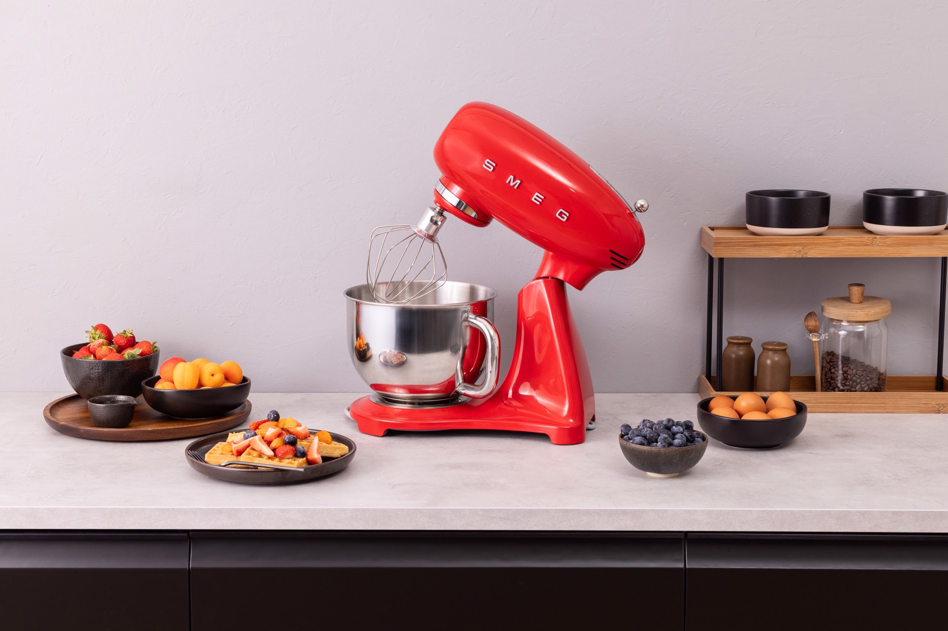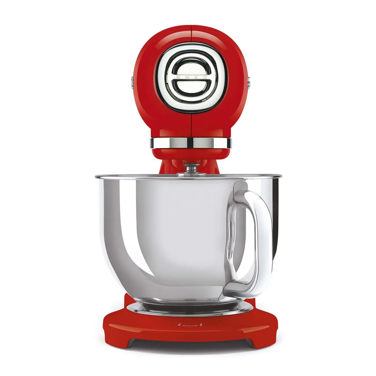 Smeg SMF05RDEU. Tipo: Sbattitore con base, Colore del prodotto: Rosso, Funzioni mixer: Sbattitura, Miscelatura, Whisking. Materiale della scocca: Alluminio, Materiale ciotola: Acciaio inox, Materiali: Alluminio, Acciaio inox. Potenza: 1000 W, Tensione di ingresso AC: 220-240 V, Frequenza di ingresso AC: 50-60 Hz. Larghezza: 405 mm, Profondità: 221 mm, Altezza: 378 mm. Larghezza imballo: 420 mm, Profondità imballo: 280 mm, Altezza imballo: 475 mm