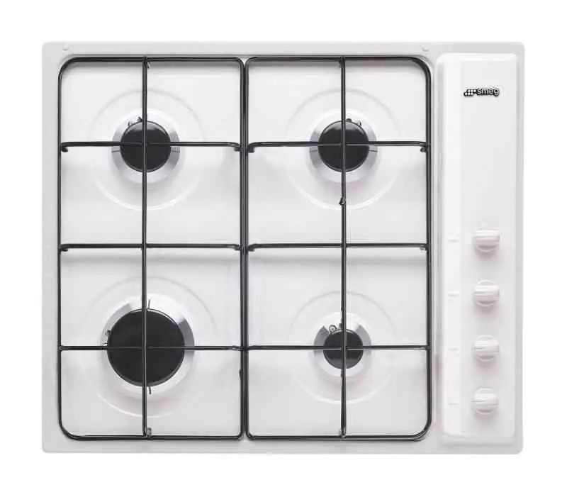 Smeg S64SB. Colore del prodotto: Bianco, Posizionamento dell'apparecchio: Da incasso, Dimensione della larghezza del piano cottura: 60 cm. Bruciatore piccolo: 1100 W, Bruciatore medio: 1800 W, Bruciatore grande: 3100 W. Tipo di controllo: Manopola, Posizione di controllo: Frontale. Potenza aggregata (gas): 7600 W, Tensione di ingresso AC: 220 - 240 V, Frequenza di ingresso AC: 50/60 Hz. Larghezza: 585 mm, Profondità: 500 mm, Altezza: 40 mm